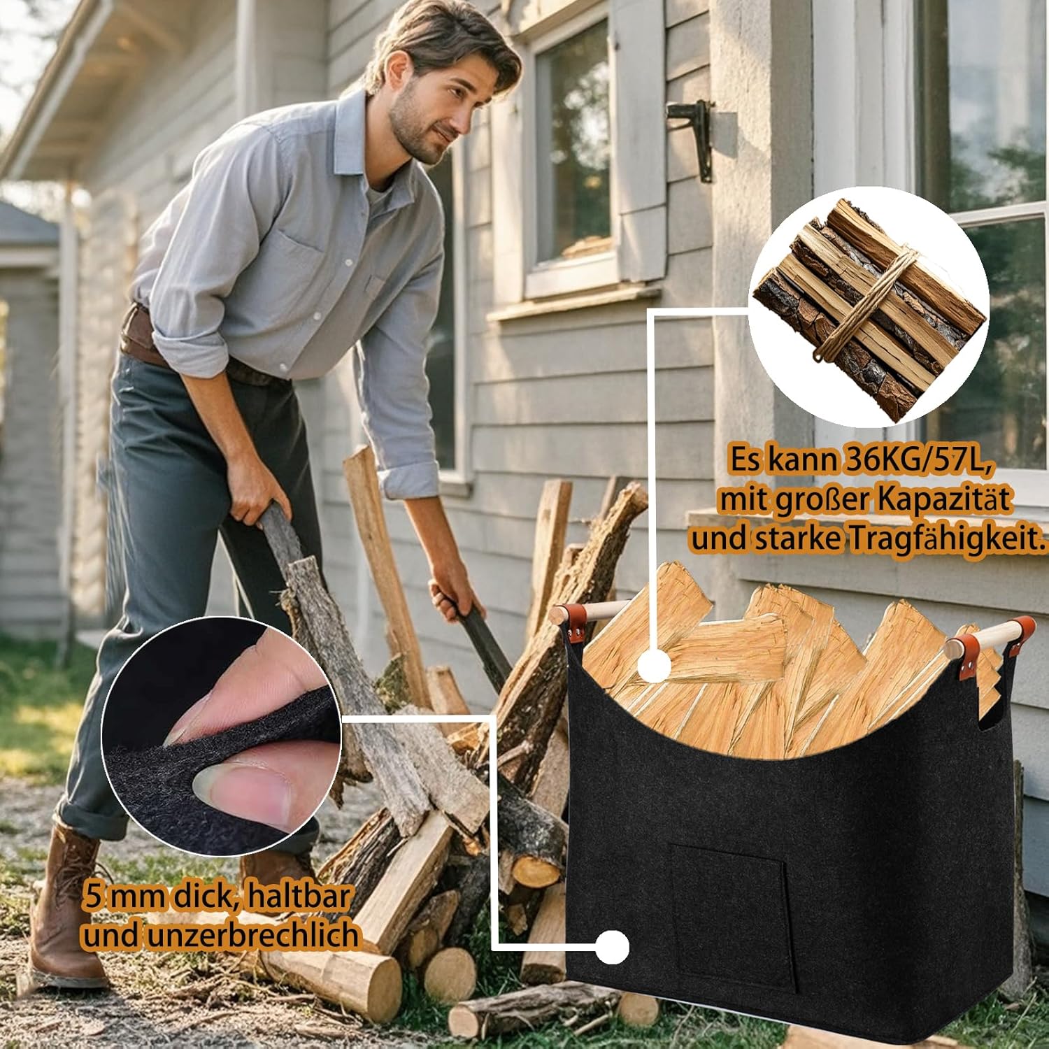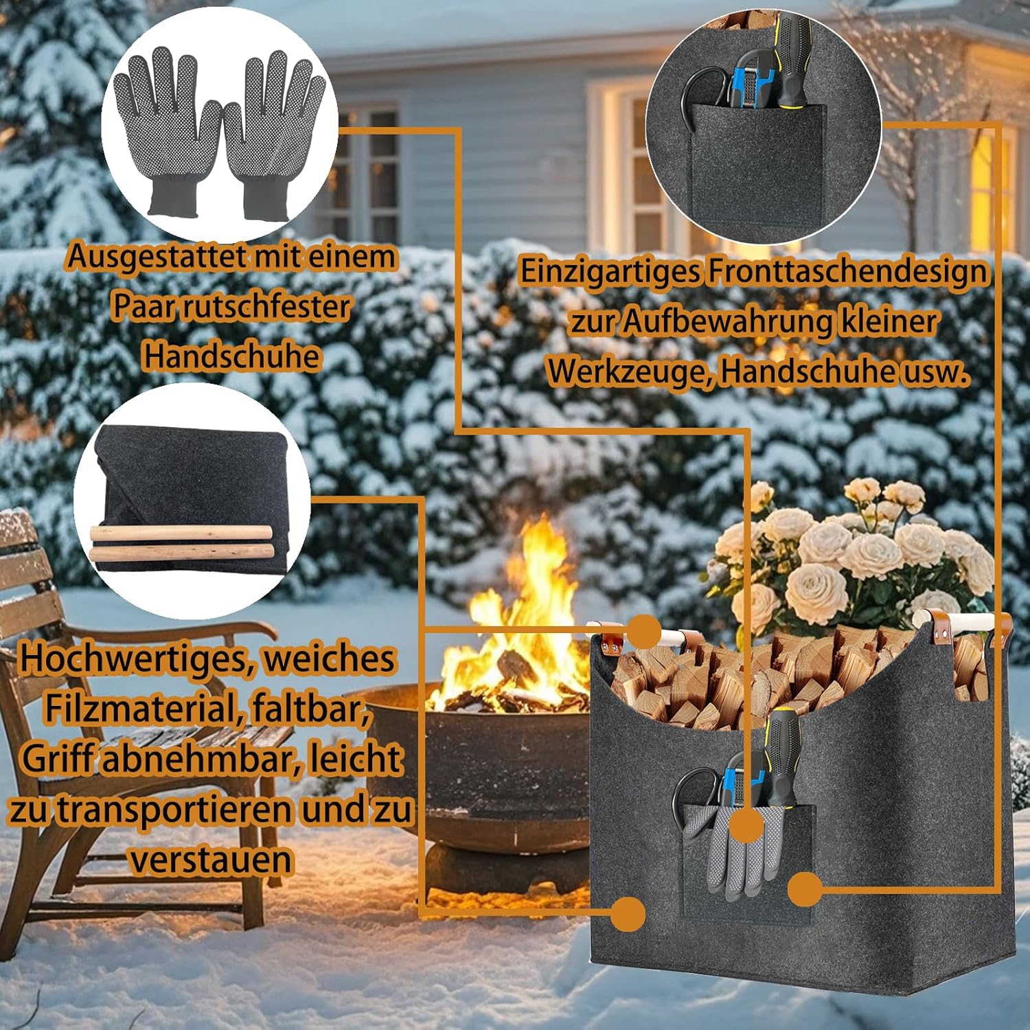 - 【Hochwertige Materialien】Der Feuerholzkorb ist mit Doppelnähten aus hochwertigem, recycelbarem Polyesterfilz gefertigt. Der besonders weiche Filz schützt den Boden vor harten und scharfen Gegenständen, ohne Schmutz oder Späne zu hinterlassen. Der