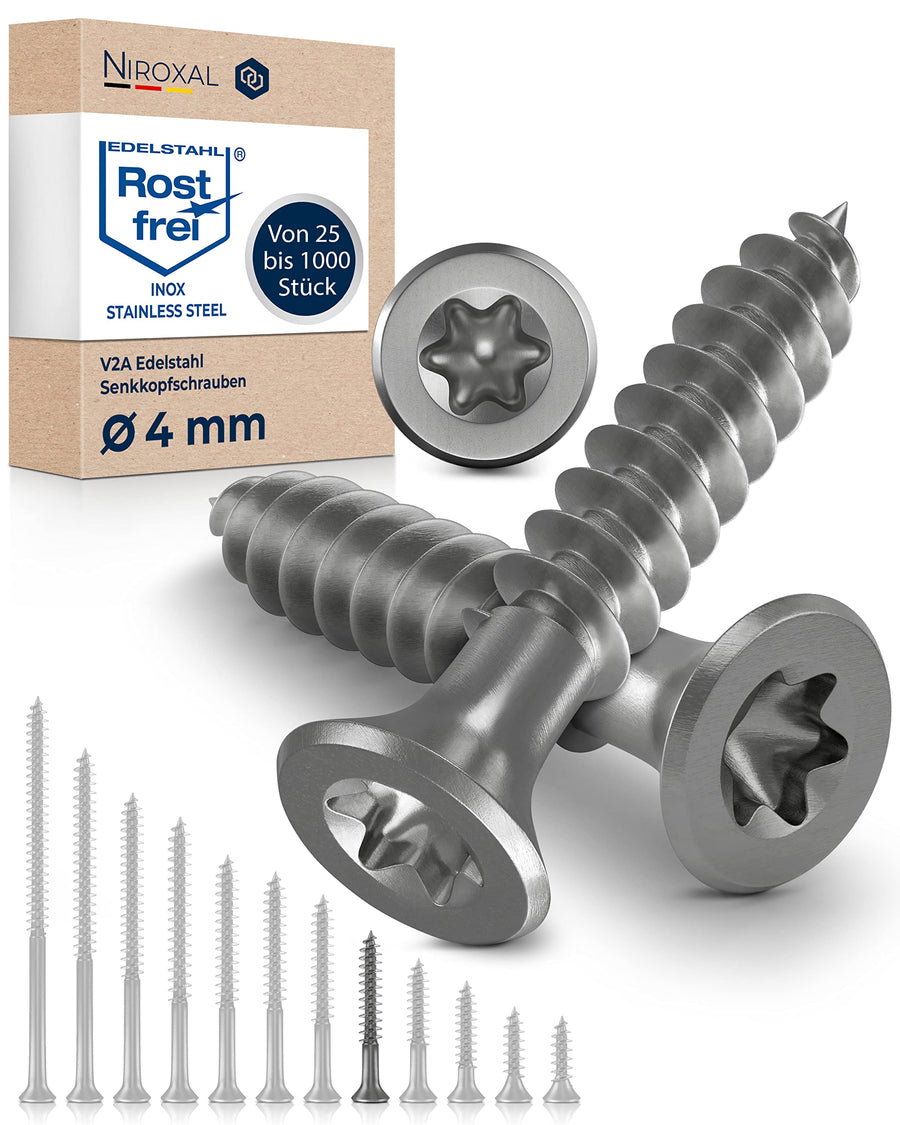 - Das solide Universalschrauben bzw. Holzschrauben Edelstahl Sortiment begeistert sowohl den Profi als auch den ambitionierten Heimwerker mit seiner hochwertigen Gleitbeschichtung und seinem taumelfreien TORX-Antrieb. Der Innensechskant ermöglicht ein