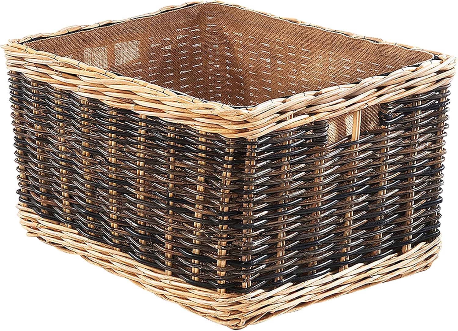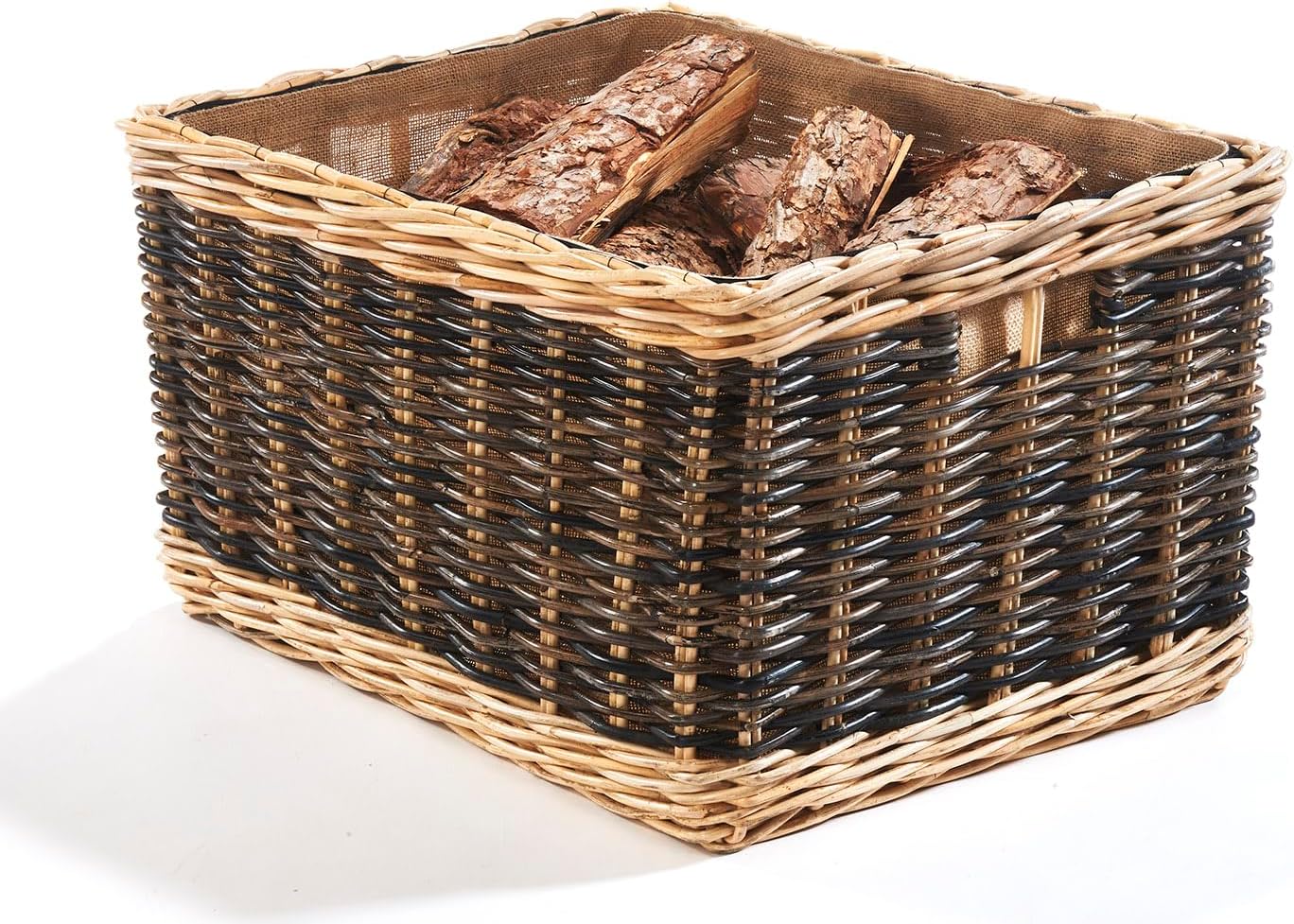 Kobolo Holztrage Holzkorb für Kaminholz - Rattan - mit Jutestoff und Henkel ausgestattet - zweifarbi