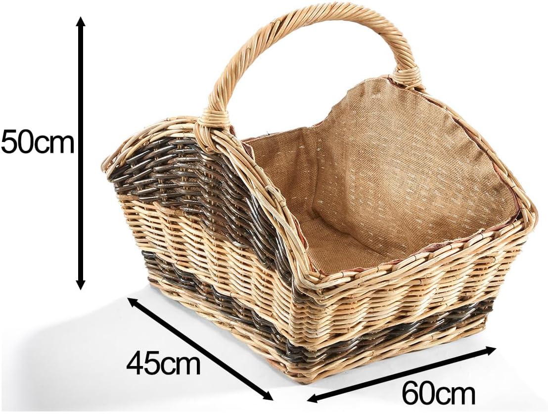 Kobolo Holztrage Holzkorb für Kaminholz - Rattan - mit Jutestoff und Henkel ausgestattet - zweifarbi