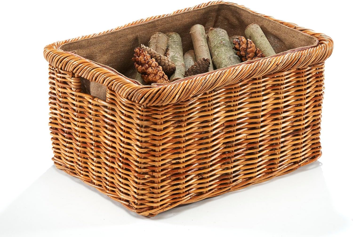 - Der Innenraum ist mit einem Leinenstoff ausgekleidet, welcher Ihre Wohnung vor herabfallendem Schmutz und Holzresten schützt und dem Korb eine elegante Note verleiht