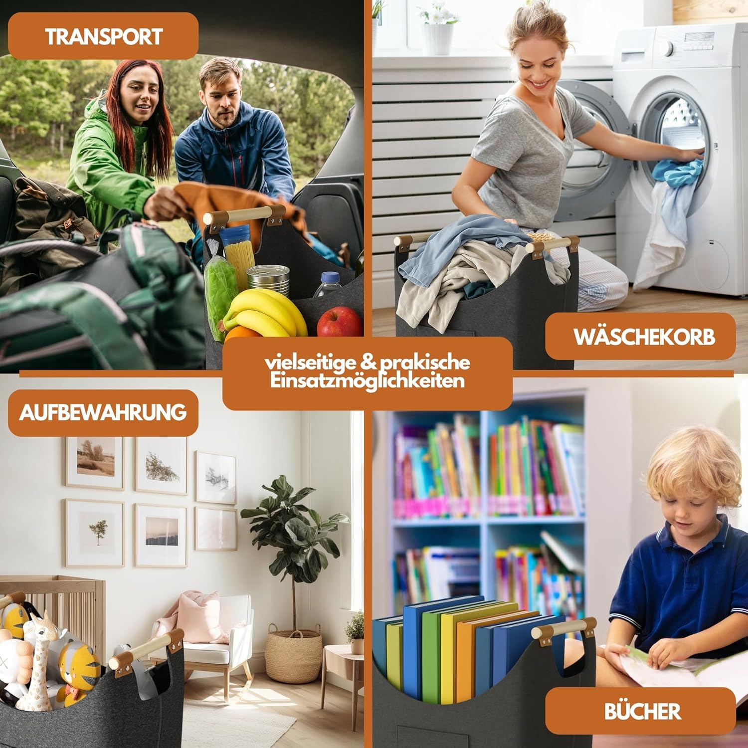- VIELSEITIGER FILZKORB: Unser Filzkorb gross bietet vielseitige Anwendungsmöglichkeiten. Ob als Holzkorb für Kaminholz oder als praktischer Brennholzkorb, er ist ein unverzichtbarer Begleiter für den modernen Mann.