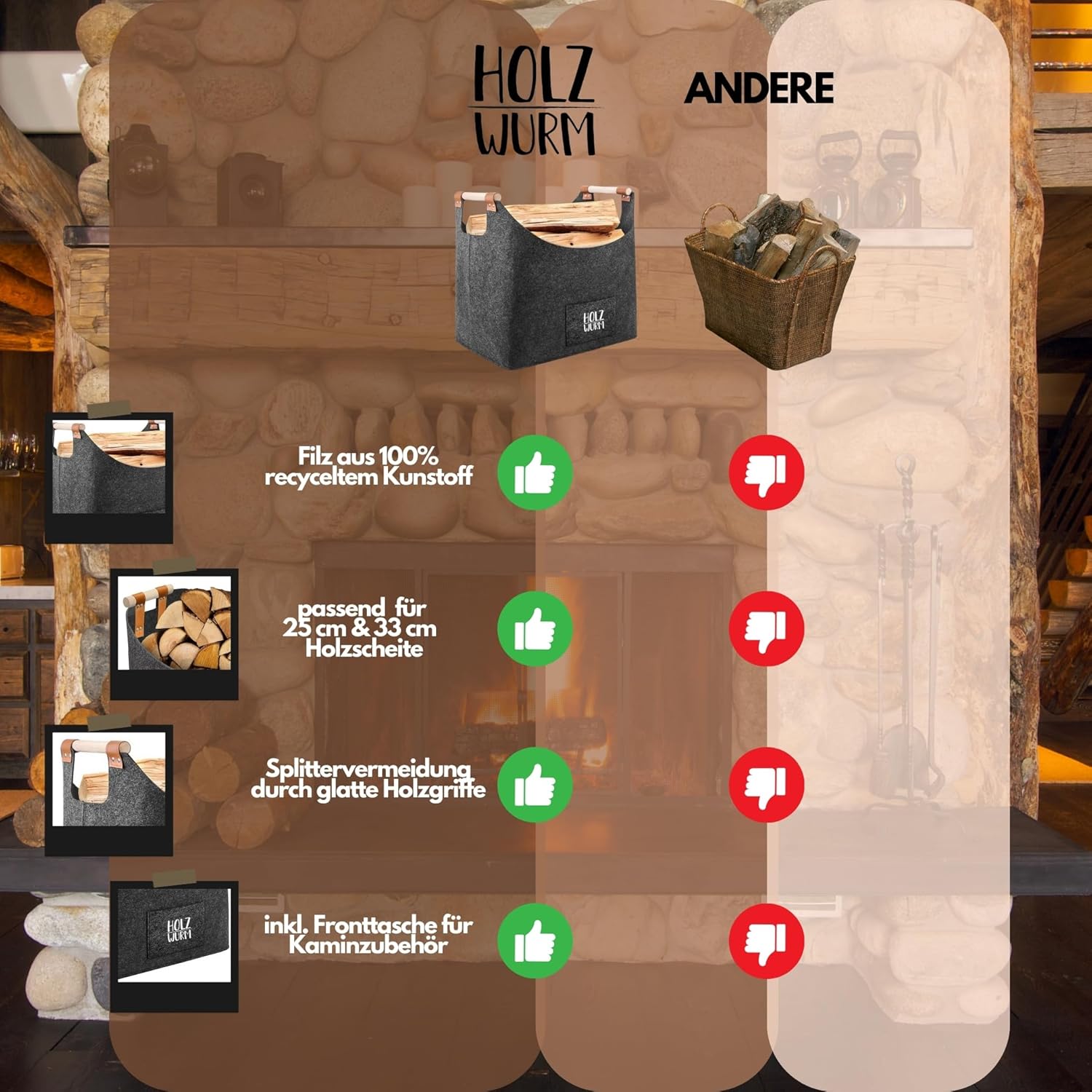 - PRAKTISCHER KAMINHOLZKORB: Der Kaminholzkorb aus Filz ist nicht nur funktional, sondern auch ein echter Hingucker. Perfekt geeignet als Holzkorb und Feuerholzkorb, bietet er eine elegante Lösung für Ihr Kaminholz.