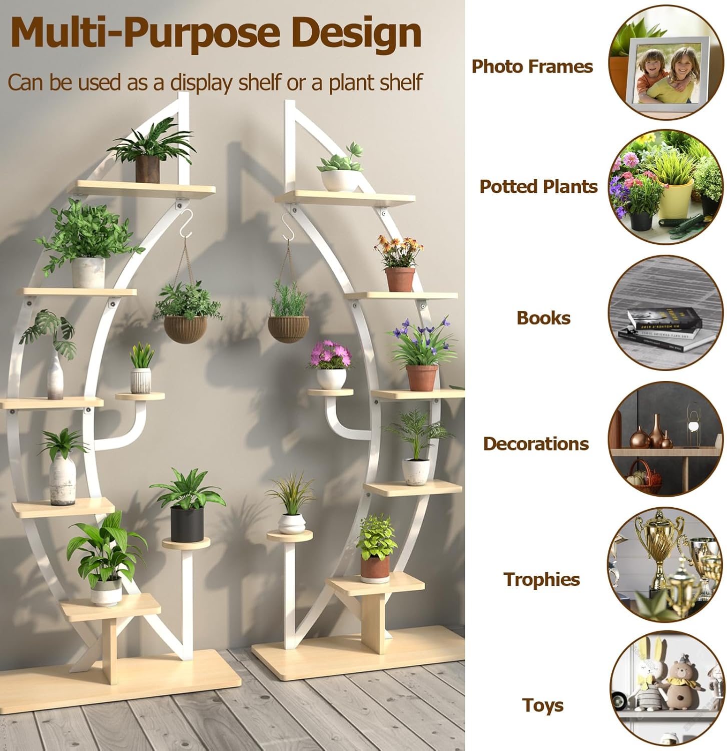 - 🌻~Grosser Speicherplatz~ Der Pflanzenständer enthält 7 Fächer und einen Haken, jedes Fach kann 20 kg tragen, der Haken kann 5 kg tragen, es kann Ihren grossen Speicherbedarf decken.