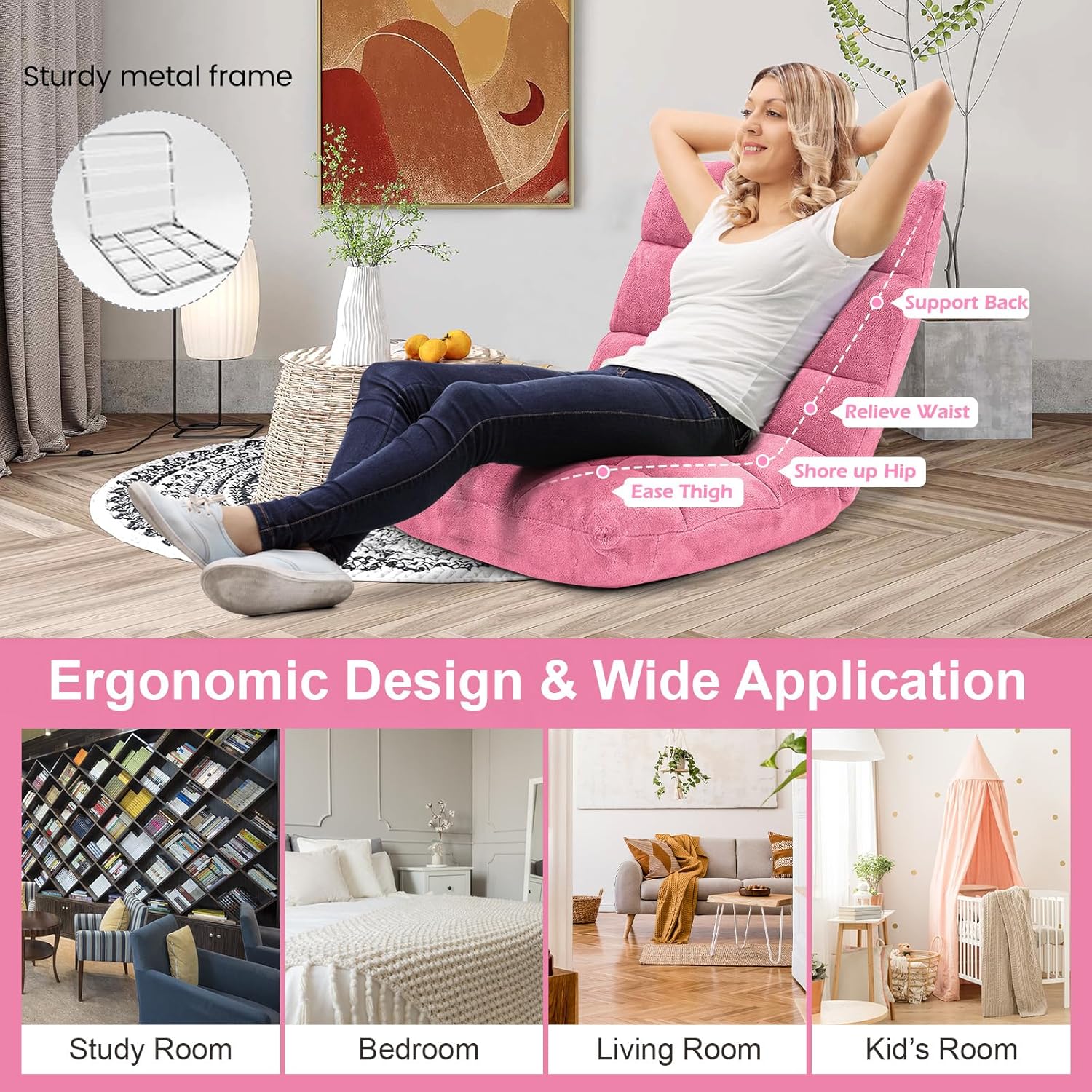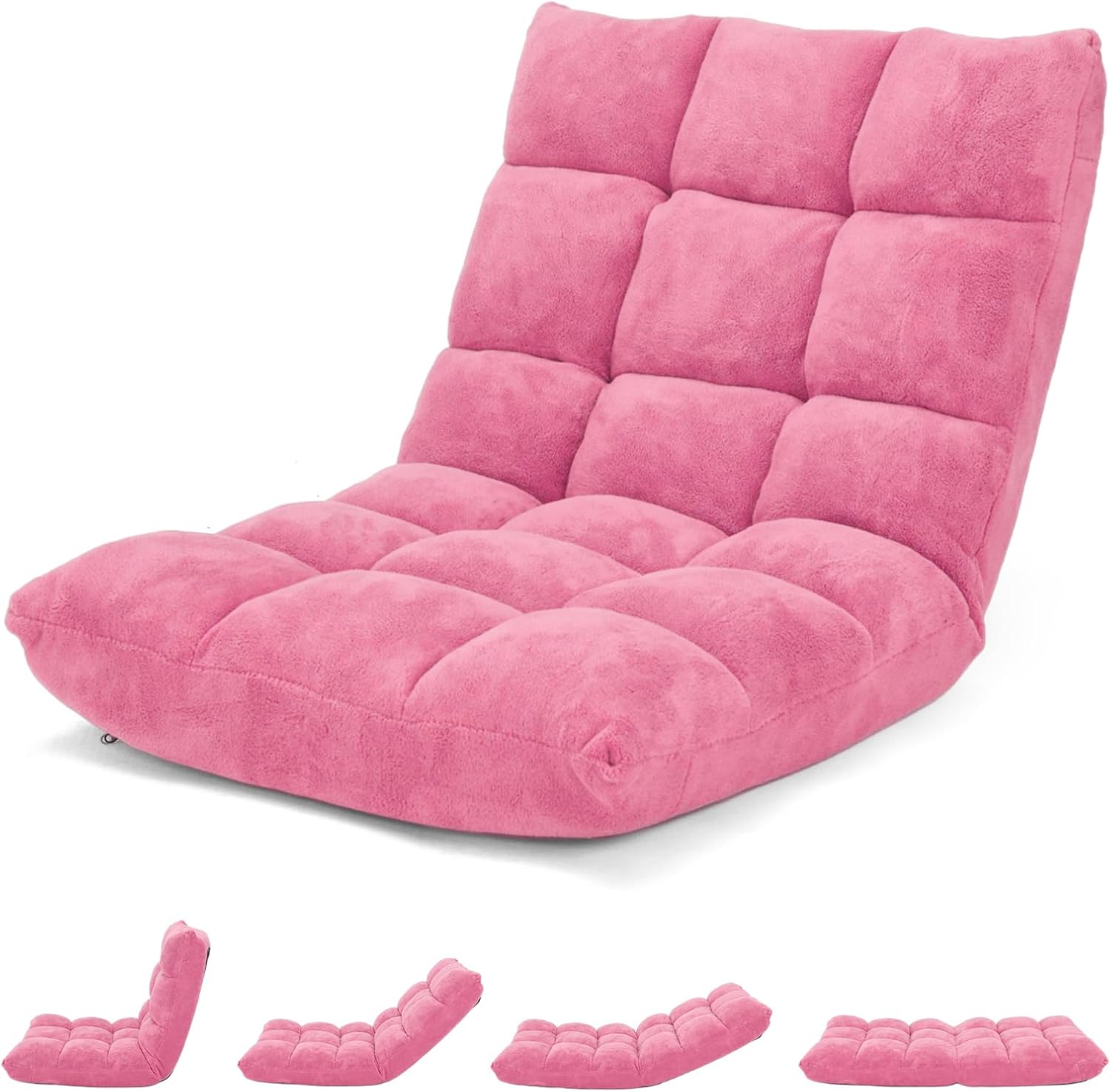 • 🛋️~Verstellbare Rückenlehne~Die Rückenlehne dieses Bodenstuhls lässt sich in 14 Positionen verstellen, so dass Sie den richtigen Winkel nach Ihren Bedürfnissen wählen können, um sich bequemer anlehnen zu können.