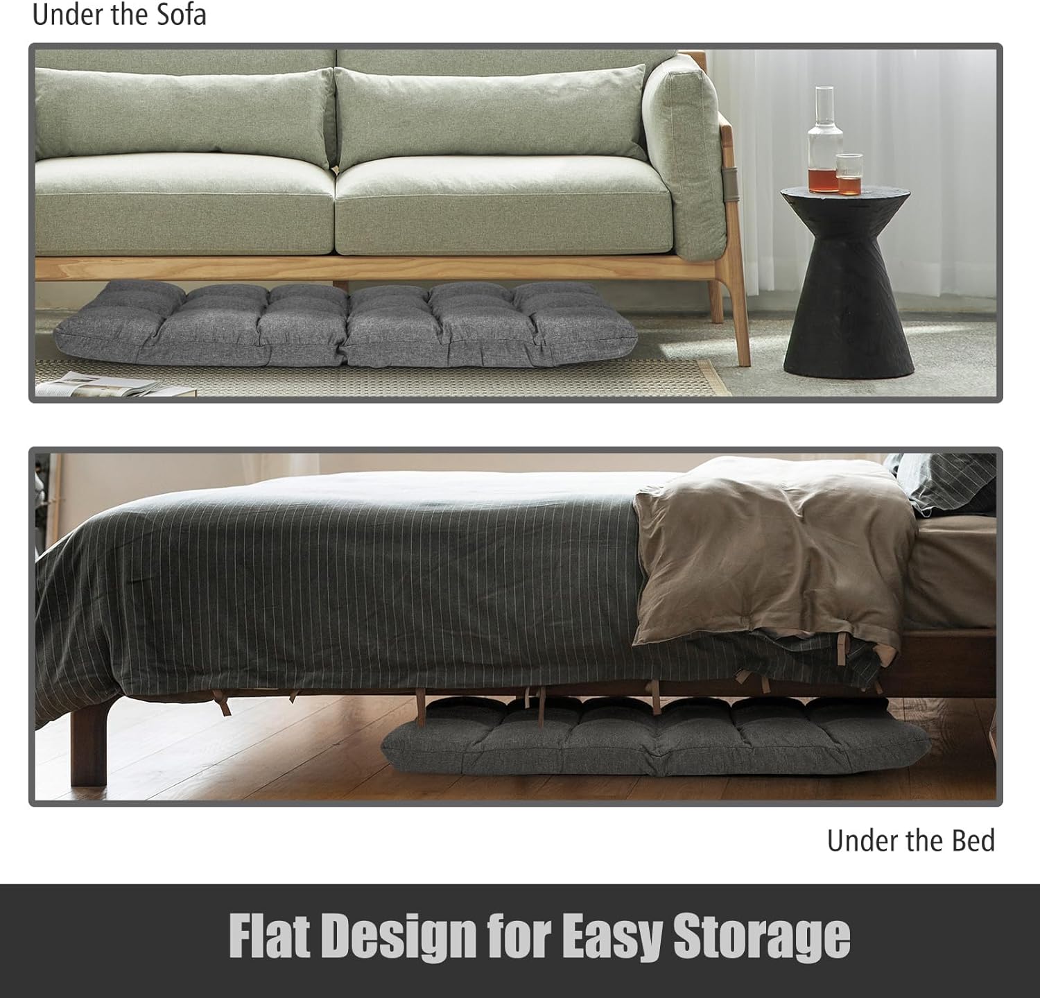 - 🛋️~Faltbares Design~Durch die klappbare Konstruktion kann dieser Bodensessel nicht nur als Liege, sondern auch als Sofa verwendet werden. Das faltbare Design spart ausserdem Platz und ist leicht zu verstauen.