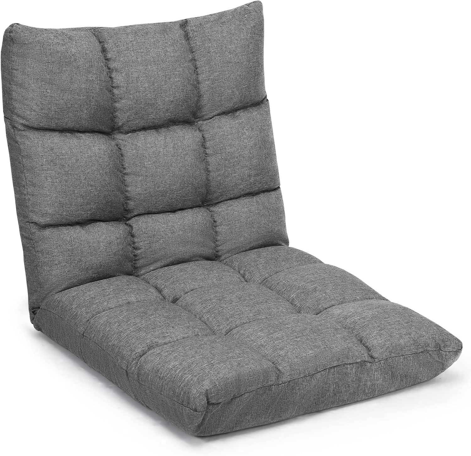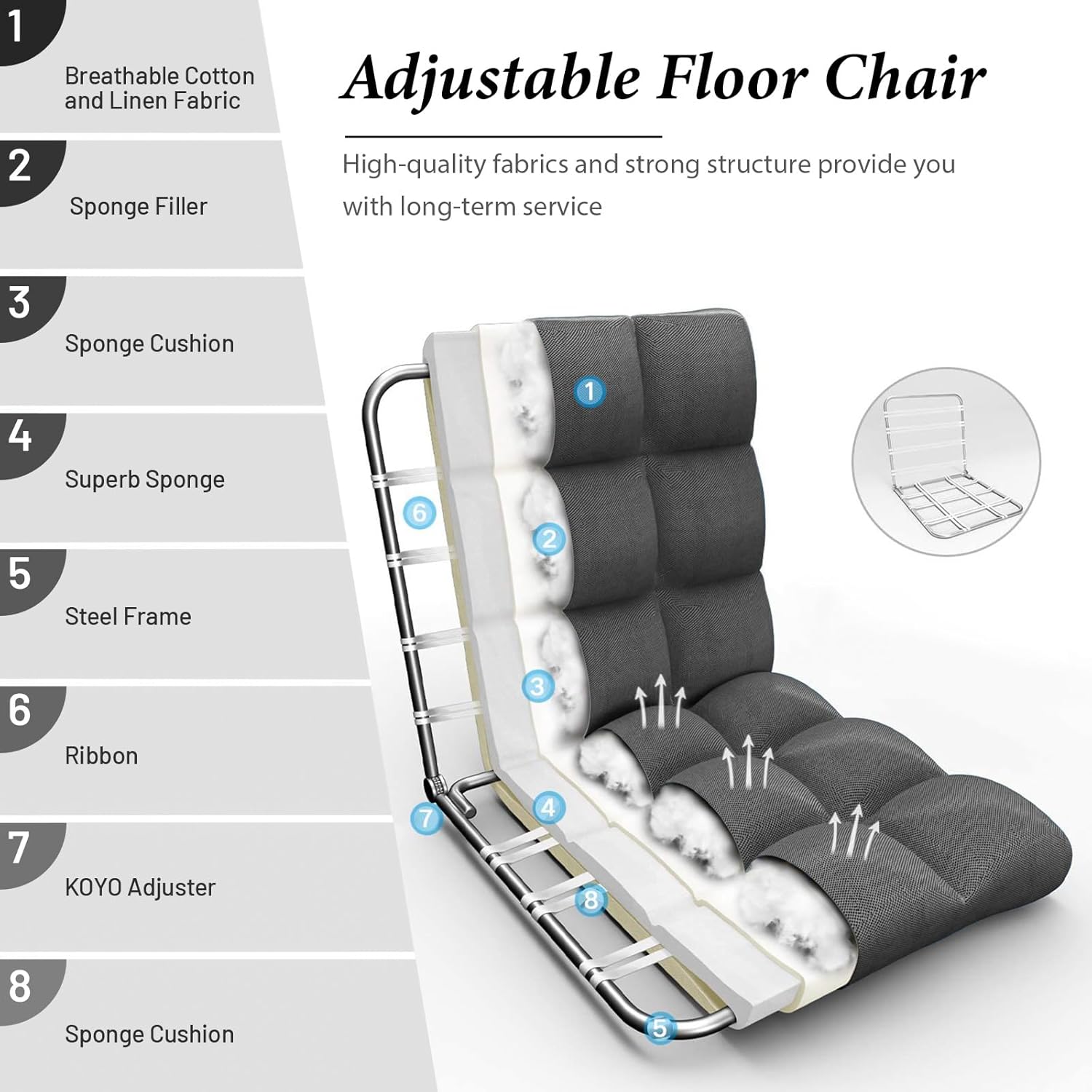 - 🛋️~Verstellbare Rückenlehne~Die Rückenlehne dieses Bodenstuhls lässt sich in 14 Positionen verstellen, so dass Sie den richtigen Winkel nach Ihren Bedürfnissen wählen können, um sich bequemer anlehnen zu können.