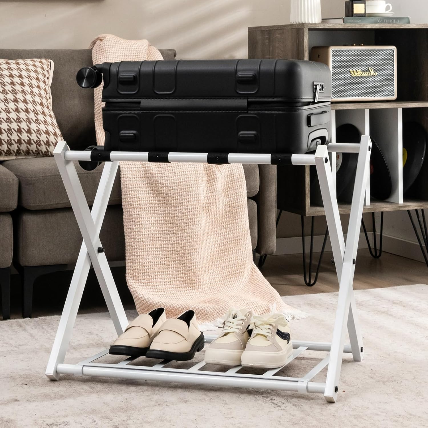 - ~ Faltbares Design ~ Dieser faltbare Kofferständer kann zur Aufbewahrung zusammengeklappt werden, was Platz spart und leicht zu transportieren ist.