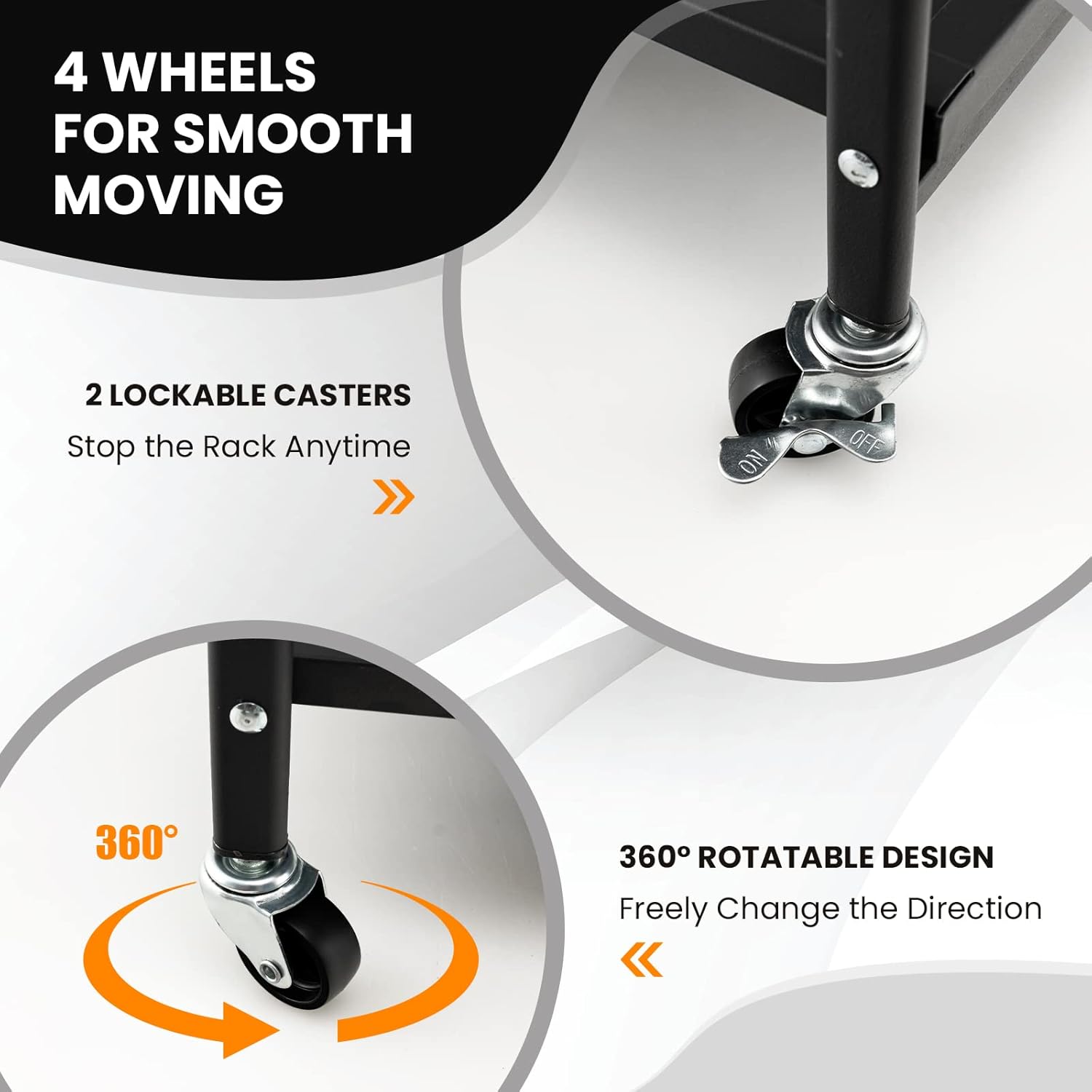 - FLEXIBLE RÄDER MIT BREMSEN: Das Metallregal ist mit vier 360°-Lenkrollen ausgestattet, mit denen sich der Wagen problemlos in der Küche, im Wohnzimmer, im Büro und in anderen Ecken bewegen lässt, und die beiden gebremsten Rollen sorgen dafür, dass