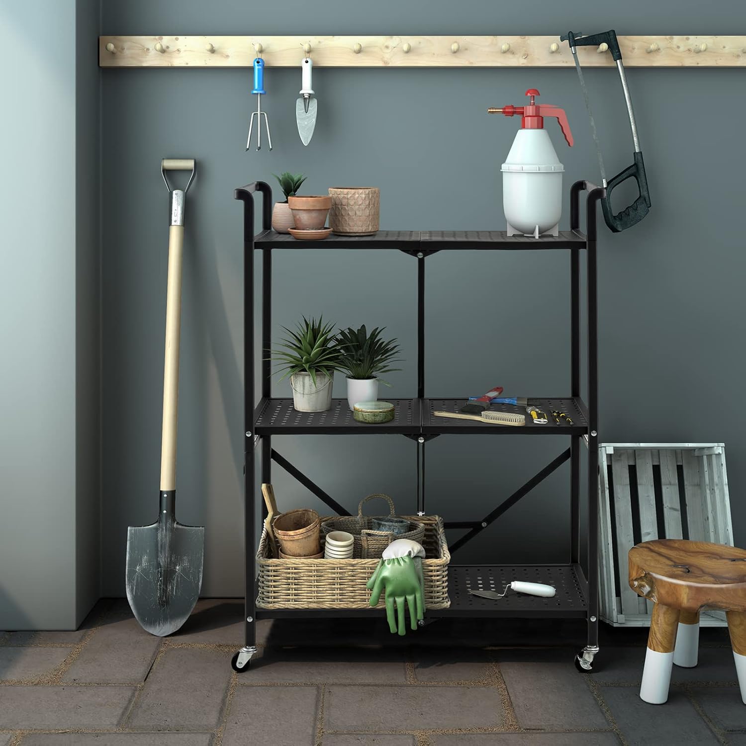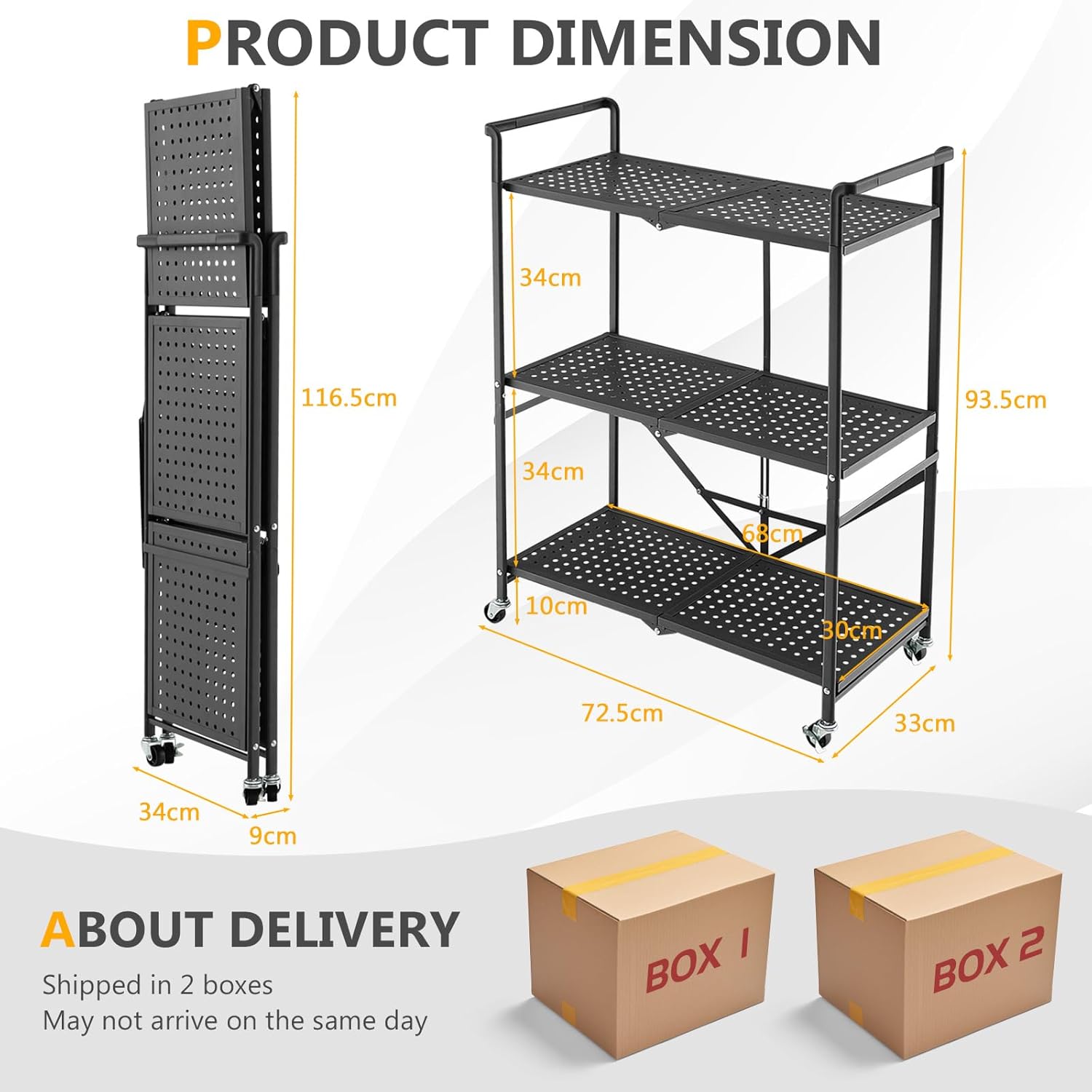 - FALTBARES DESIGN SPART PLATZ: Dieser 3-stöckige faltbare Servierwagen. Es lässt sich auf eine Grösse von 72,5 x 33 x 93,5 cm aufklappen und bietet so reichlich Stauraum. Sein einzigartiges One-Touch-Faltdesign lässt sich in Sekundenschnelle