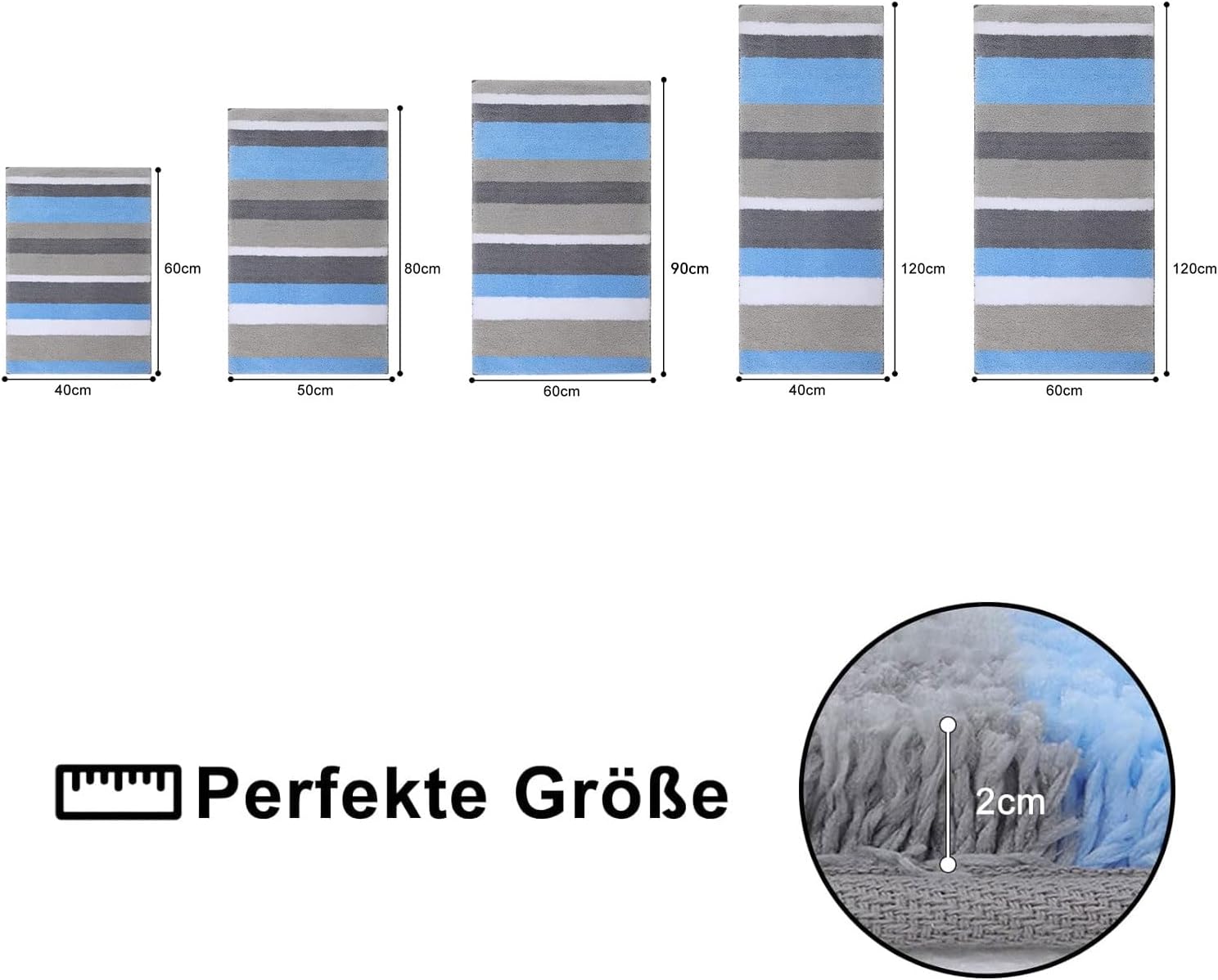 - ❤ Weit verbreitet: Dieser Badteppich ist in 4 Grössen erhältlich: 40 x 60 cm, 50 x 80 cm, 40 x 120 cm und 60 x 120 cm. Wir haben auch 2 Kombinationsgrössen: 40 x 60 cm + 50 x 80 cm und 40 x 60 cm + 40 x 120 cm. Klassische gestreifte Designmasken