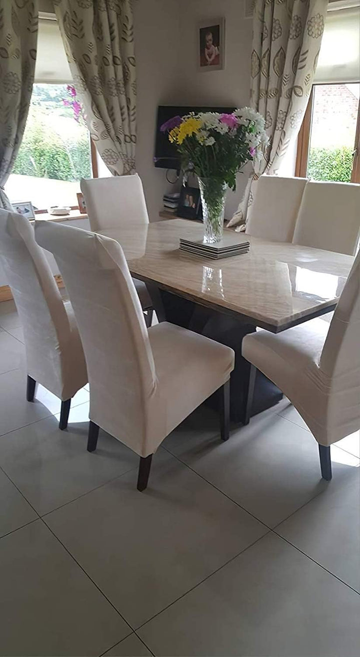 - Velvet Stuhlbezüge: Hochwertige Samtbezüge aus Samtgewebe, super weich und bequem. Verkleiden Sie Ihre Esszimmerstühle, um einen tollen neuen Look zu kreieren