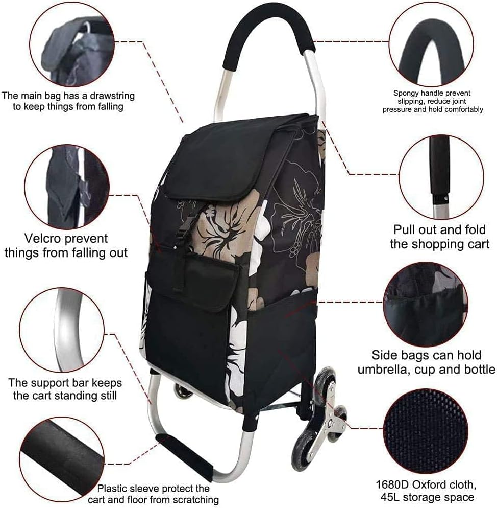 - RÜCKSICHTIGES DESIGN: Die Haupttasche hat einen Kordelzug, damit nichts herunterfällt. Die Front- und Seitentaschen bieten Platz für Regenschirm, Tasse und Flasche. Die Reissverschlusstasche auf der Rückseite kann Ihre wertvollen Sachen verstauen. Der schwammige Griff verhindert das Abrutschen Ihrer Hände, reduziert Ihren Gelenkdruck und ermöglicht Ihnen ein bequemes Halten. Die Stützstange hält den Wagen still. Die Kunststoffhülle an der Unterseite schützt Wagen und Boden vor Kratzern.