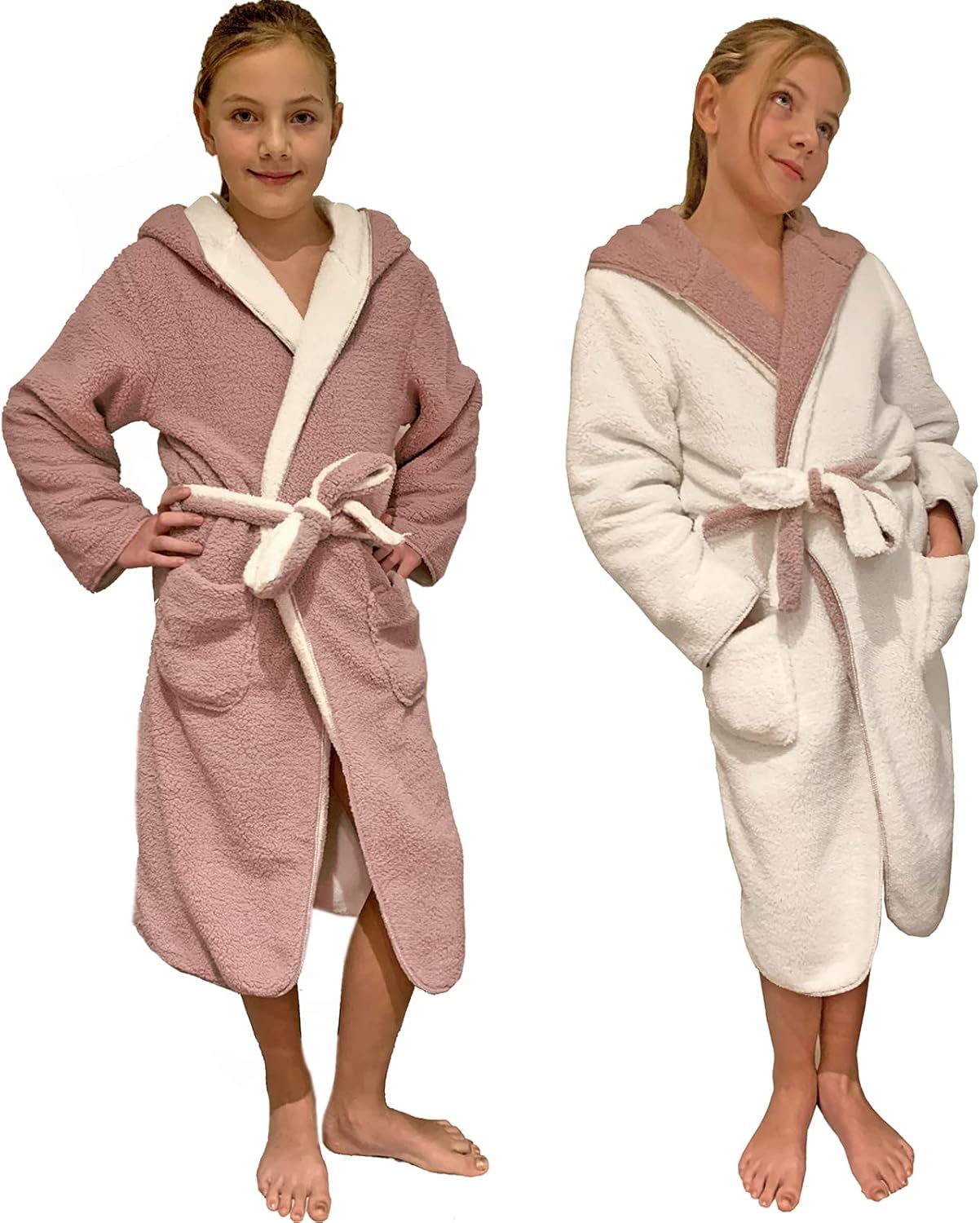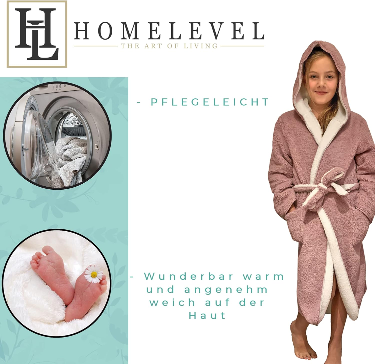 HOMELEVEL Kuschelfleece Bademantel für Kinder - Sherpa Morgenmantel mit Taschen Schalkragen Gürtel -