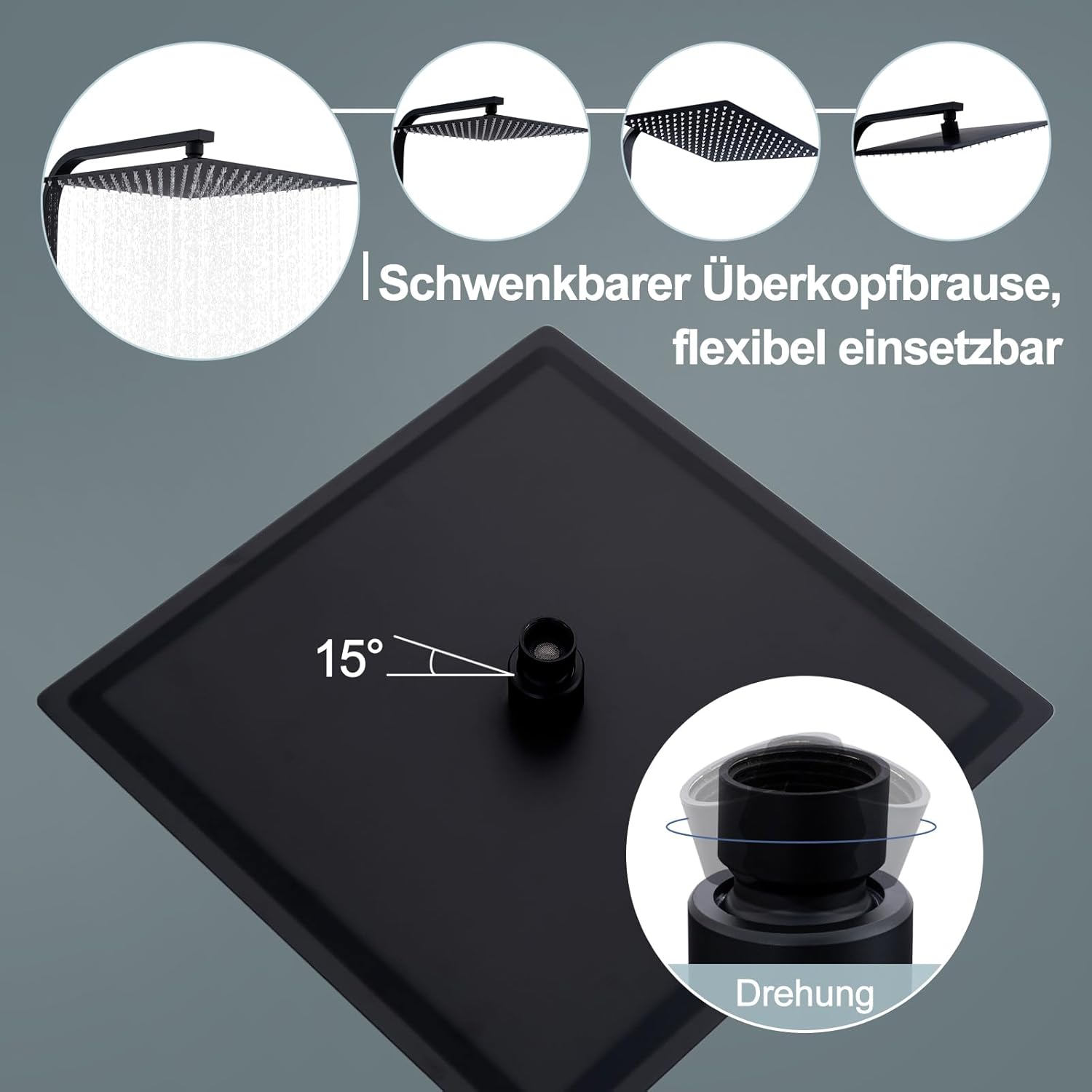 - 【Einfache Montage & flexibler Duschkomfort】Die Kopfbrause ist um ±15° schwenkbar, die Handbrause individuell verstellbar – für ein komfortables Duscherlebnis ganz nach Ihren Wünschen. Die Montage gelingt dank beiliegender Anleitung besonders