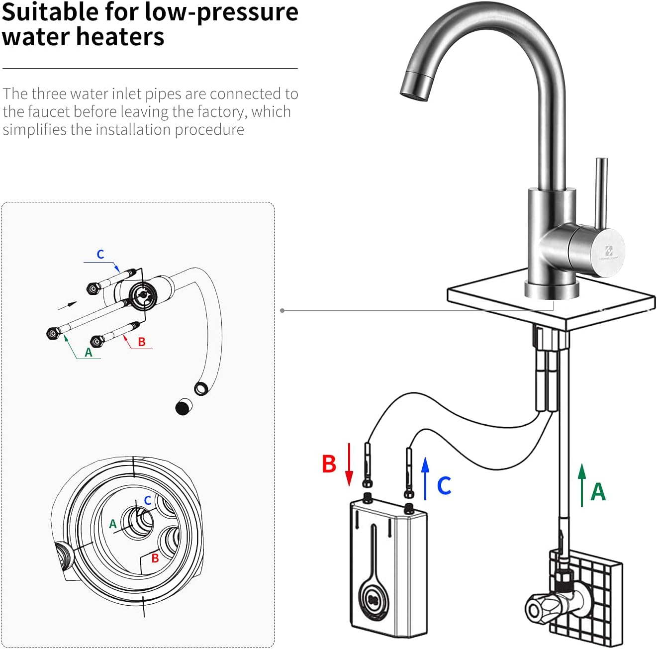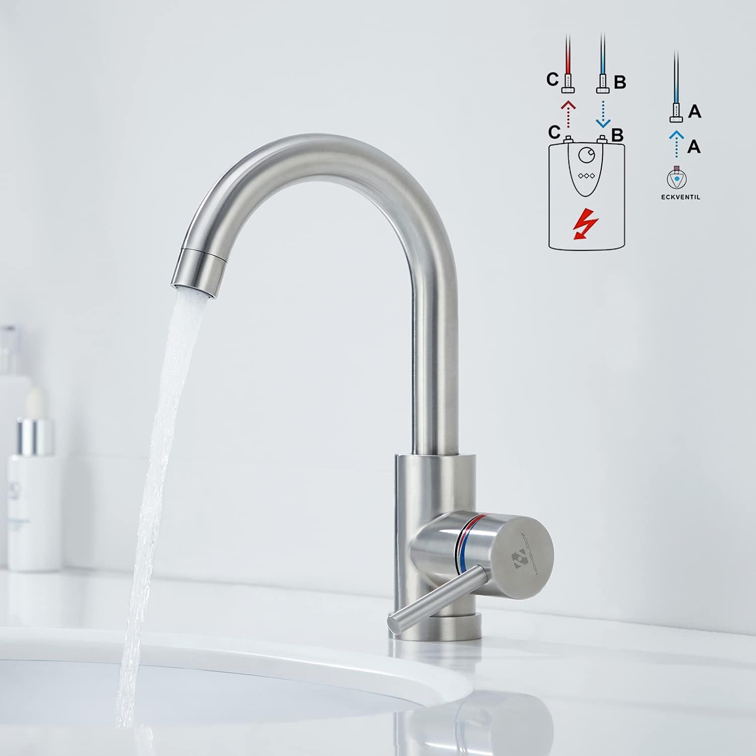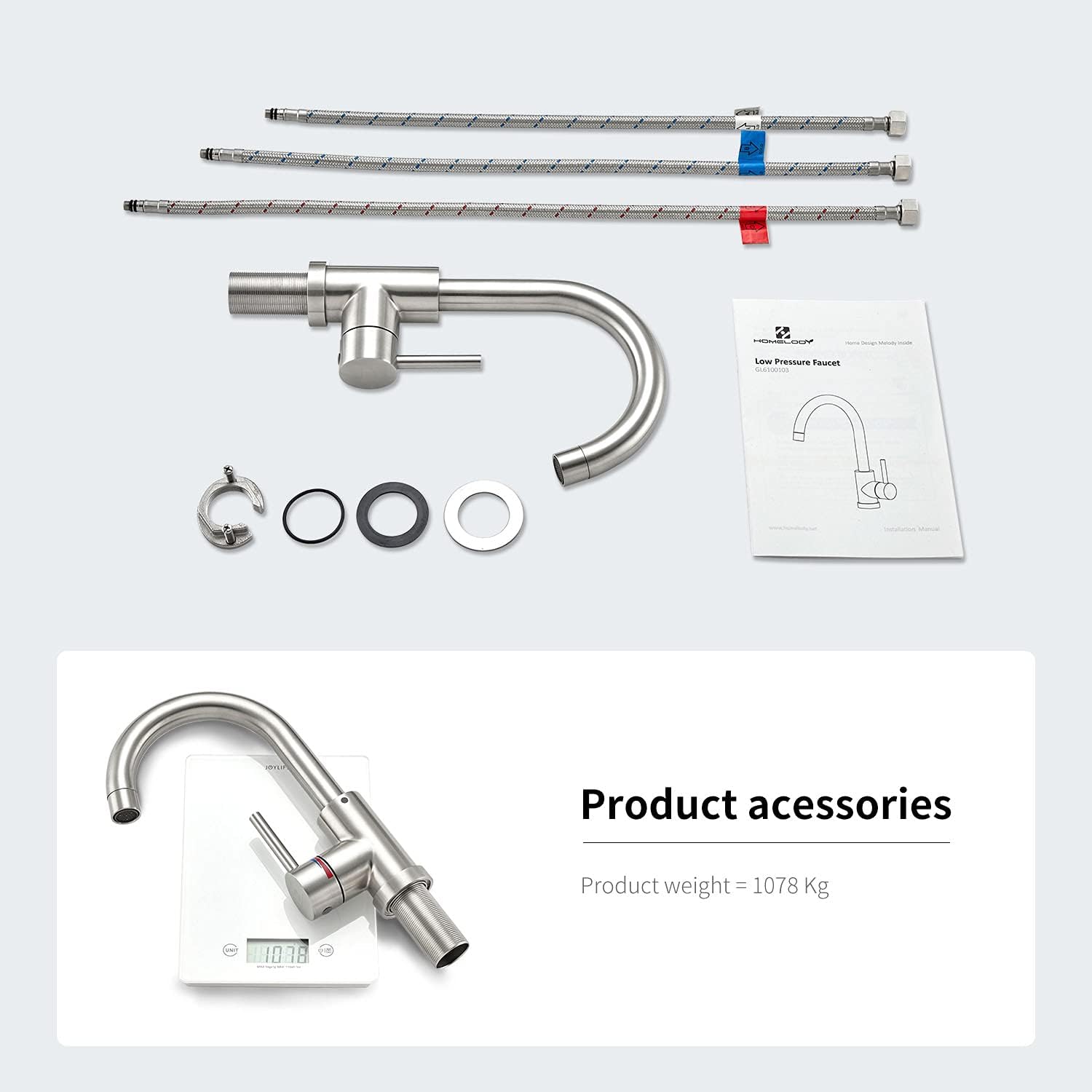 - 【Qualitätsmaterialien】: Hergestellt aus hochwertigem Edelstahl 304 mit Drahtziehverfahren, ist dieser Niederdruckhahn langlebig und korrosionsbeständig. Dank des PEX-Materialschlauches ist das Abwasser ungiftig, farblos und geschmacklos.