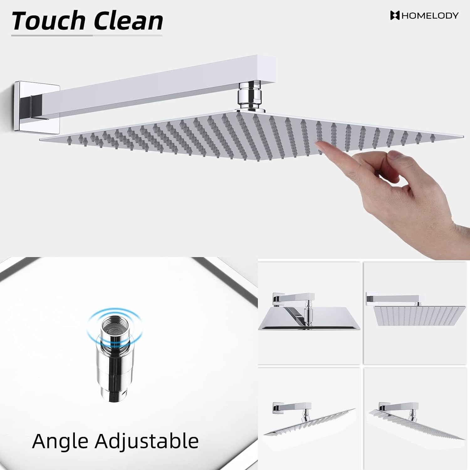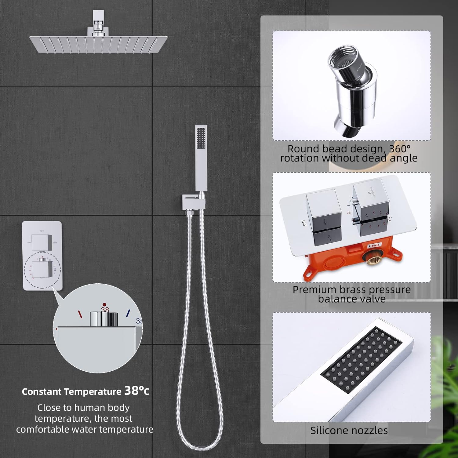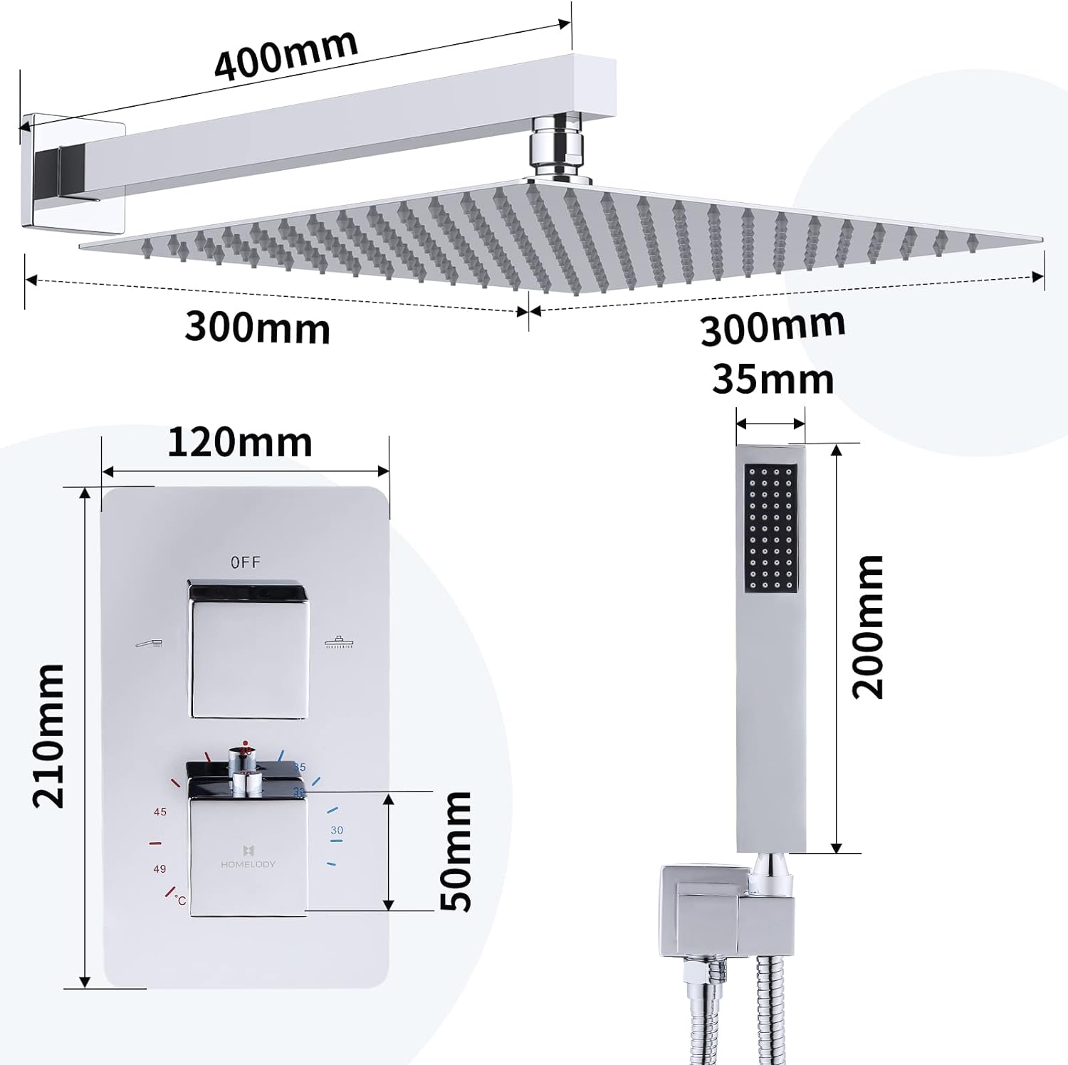 HOMELODY Regendusche Duschsystem mit Thermostat Unterputz Duscharmatur Eckig, Duschamaturenset Chrom