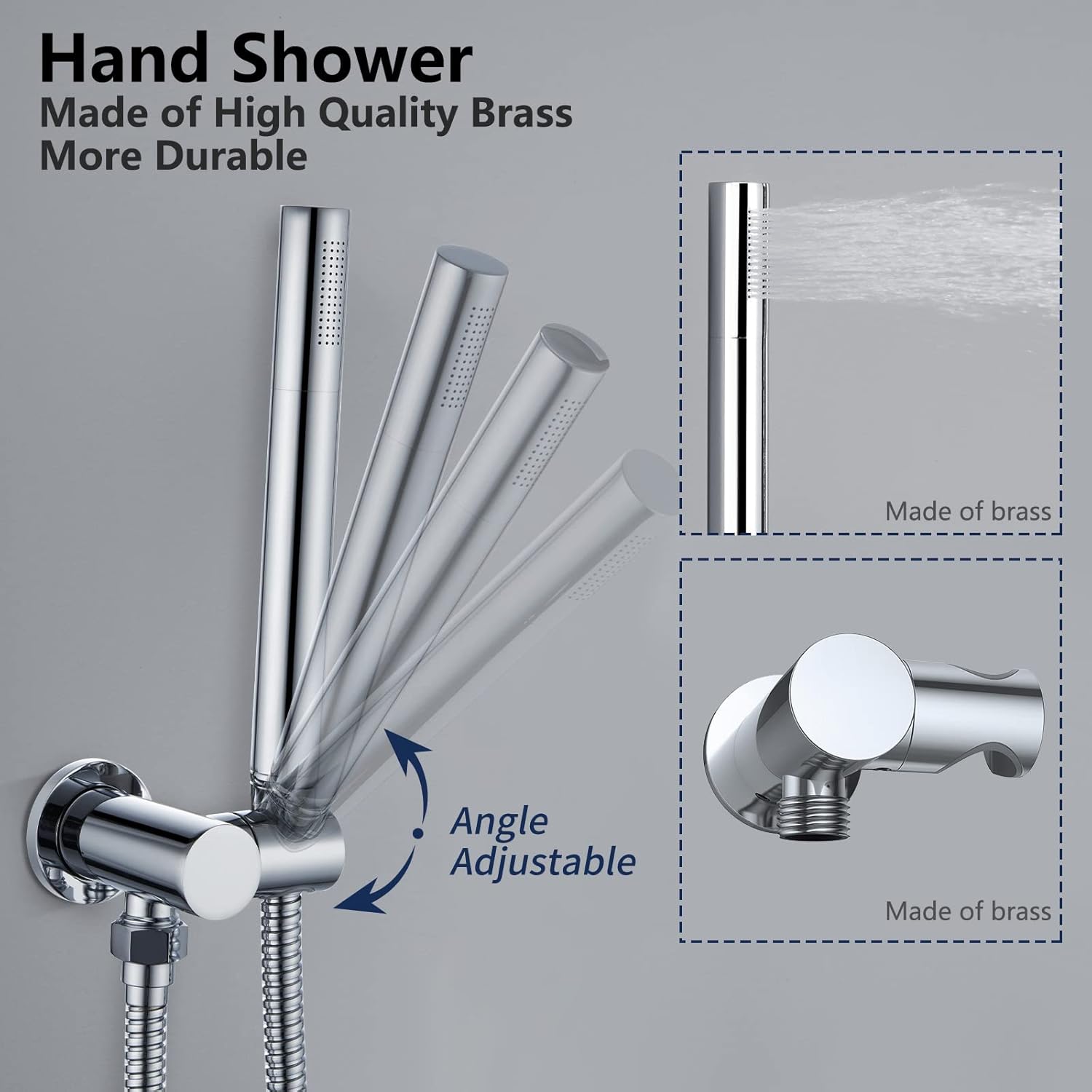• 【Klassisches Chrom Duschsystem】Die chromschicht ist heller, und der neue verdeckte stil ist schlicht und doch elegant. Das unterputz duscharmatur hat die mehrschichtige galvanik des salzsprühtests bestanden, der die oberflächenkorrosion der