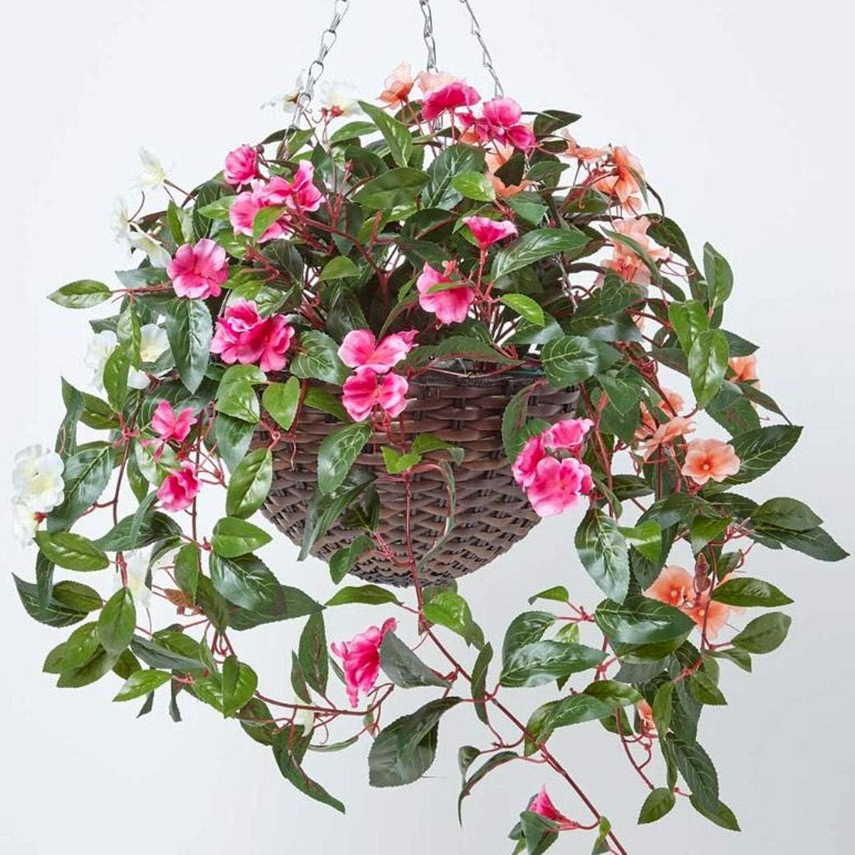 - Hängendes künstliches Fleissige Lieschen mit Korb aus Kunststoff, Kette und Haken. Grösse ca.: H85 x B75 cm, Topf Durchmesser: 30 cm, Gewicht: 0,75kg. Farbe: Bunt