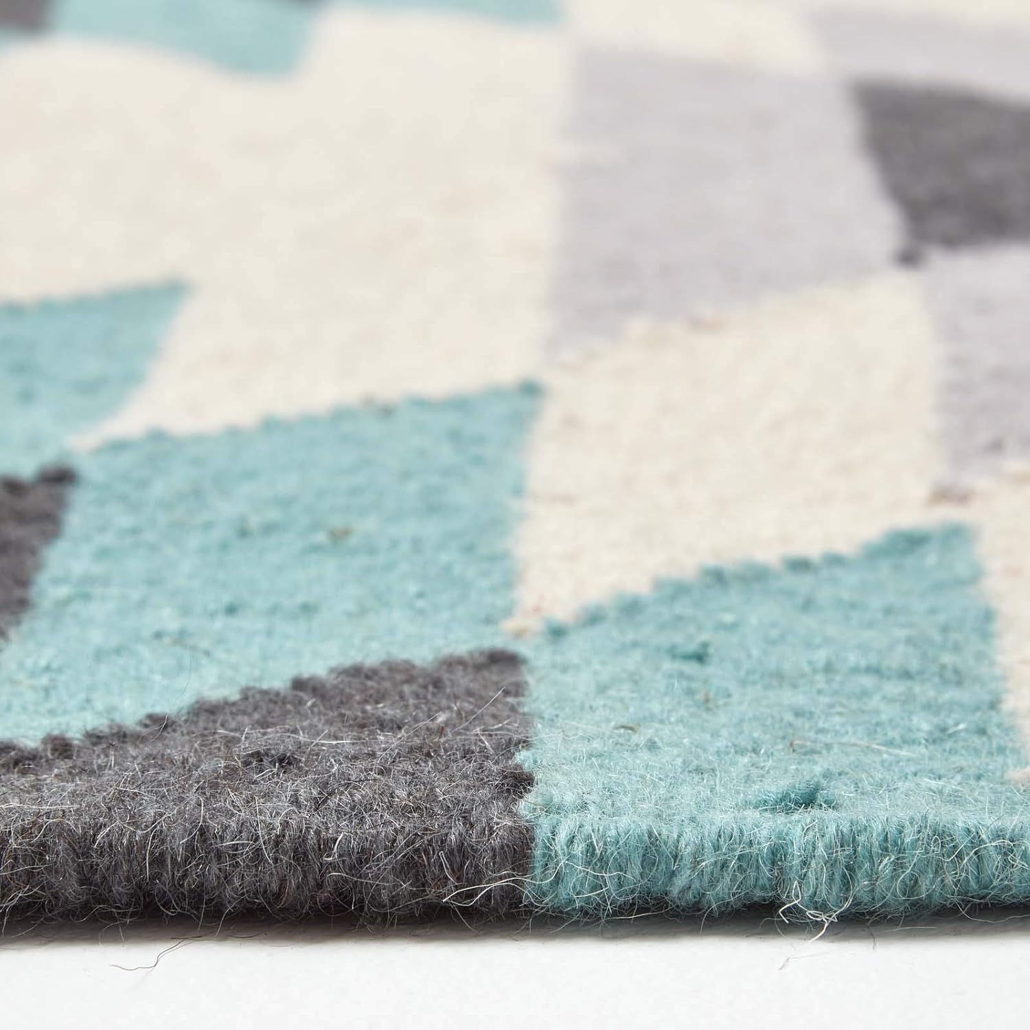 - Material: 75% Wolle, 25% Baumwolle. Durch das praktische Wendedesign kann der Teppich auf beiden Seiten verwendet werden. Auch für Böden mit Fussbodenheizung geeignet.