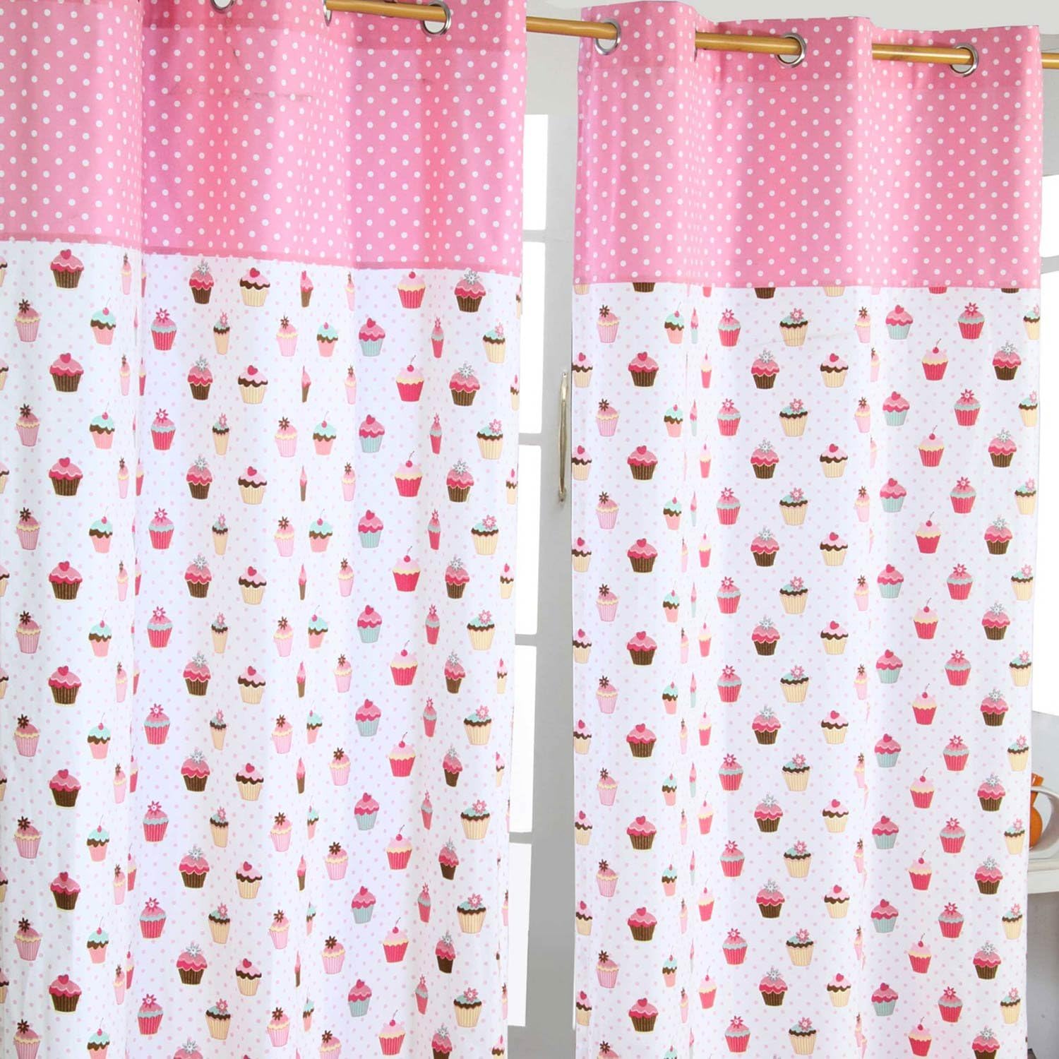 - Dekorativer Ösenvorhang bedruckt mit Cup Cakes aus 100% reiner Baumwolle