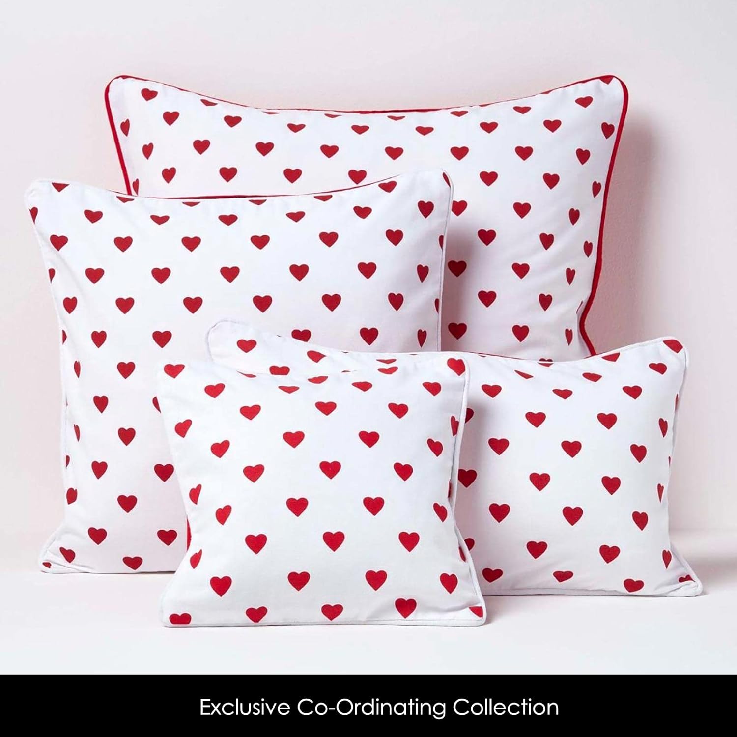 - Dekorativer Ösenvorhang bedruckt Herzen rot aus 100% reiner Baumwolle