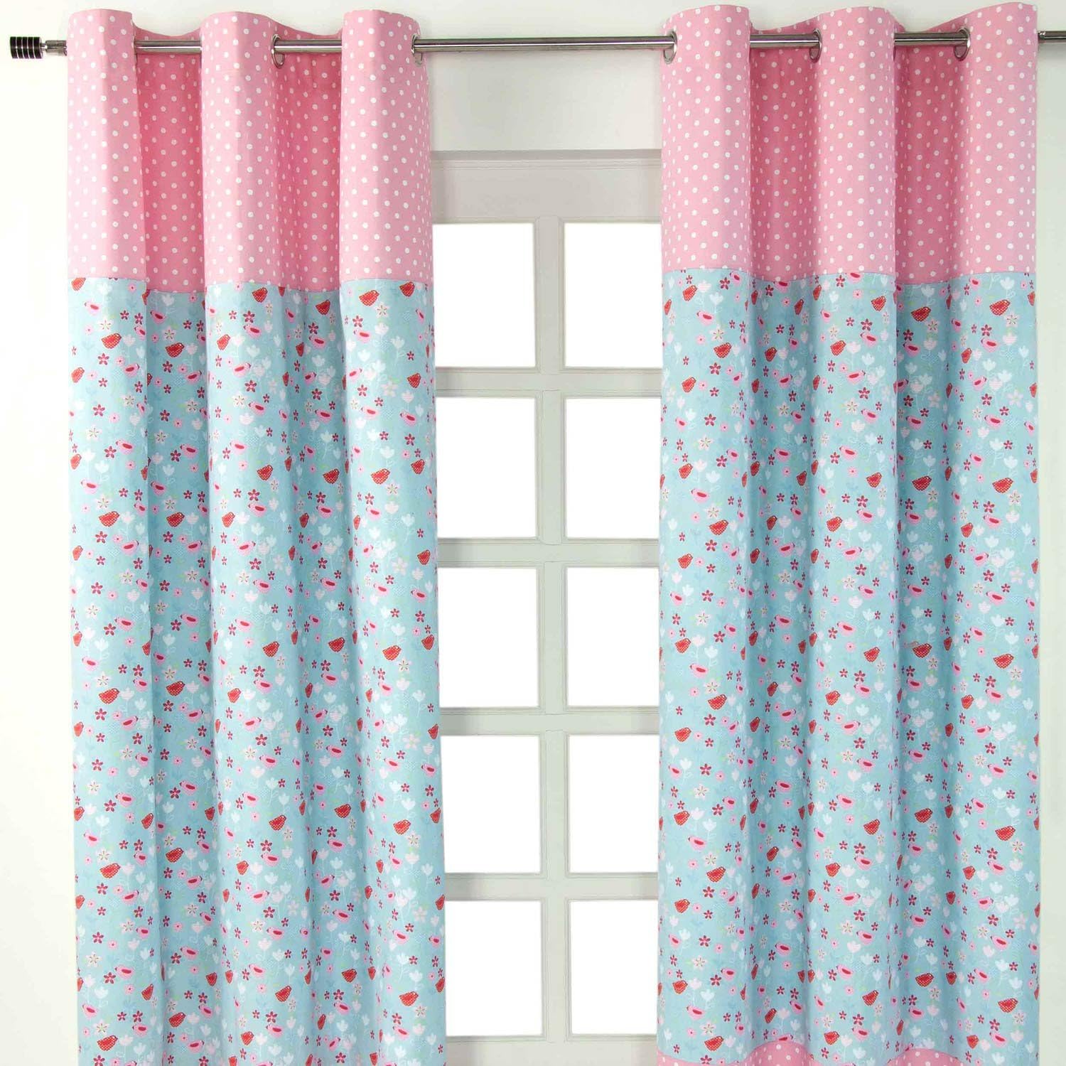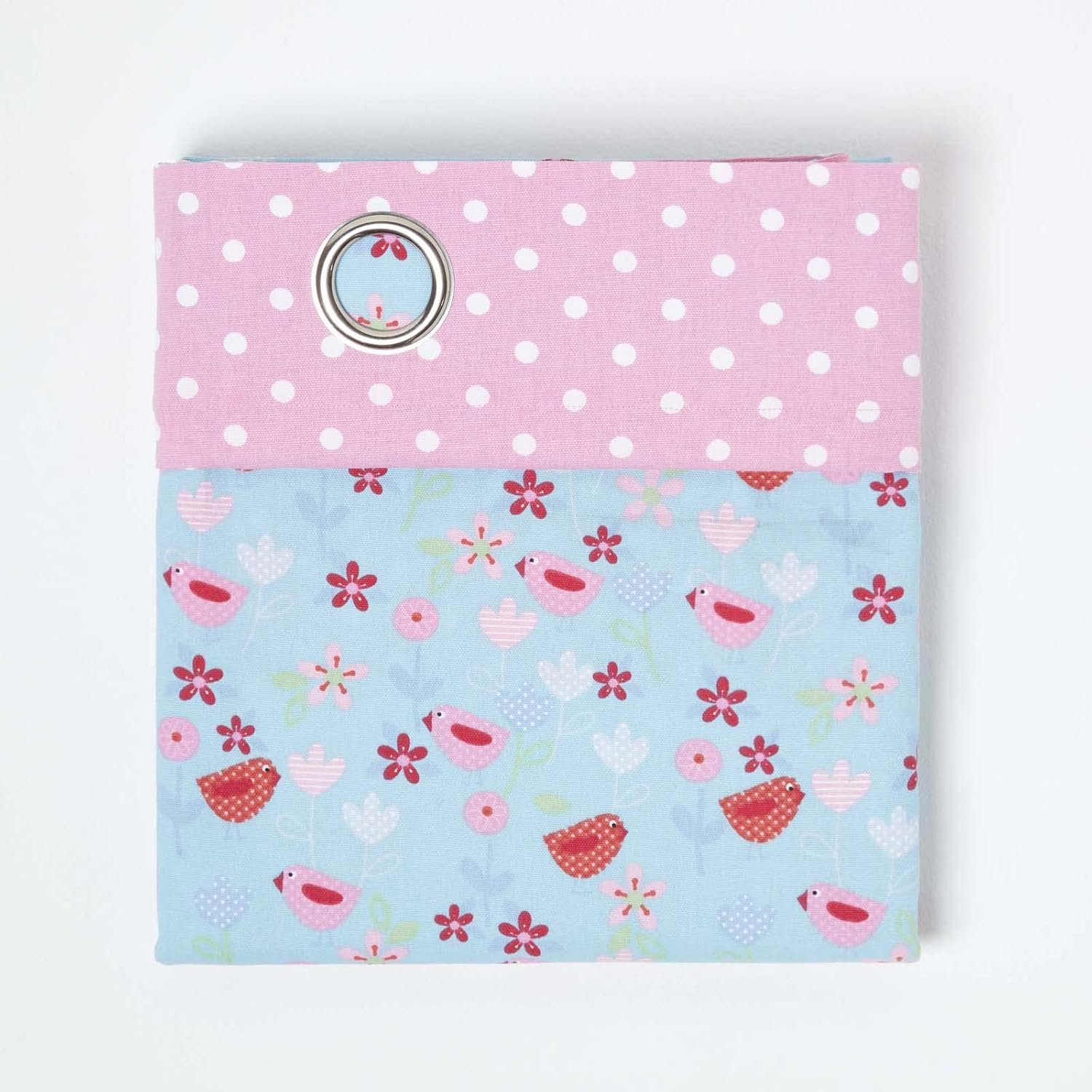 - Dekorativer Ösenvorhang bedruckt mit Birds & Flowers pink blau aus 100% reiner Baumwolle.