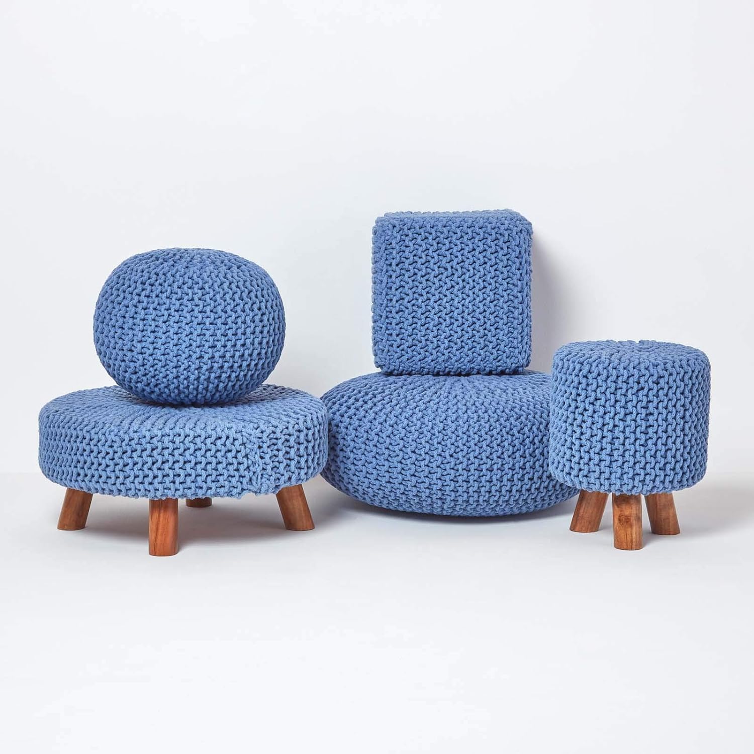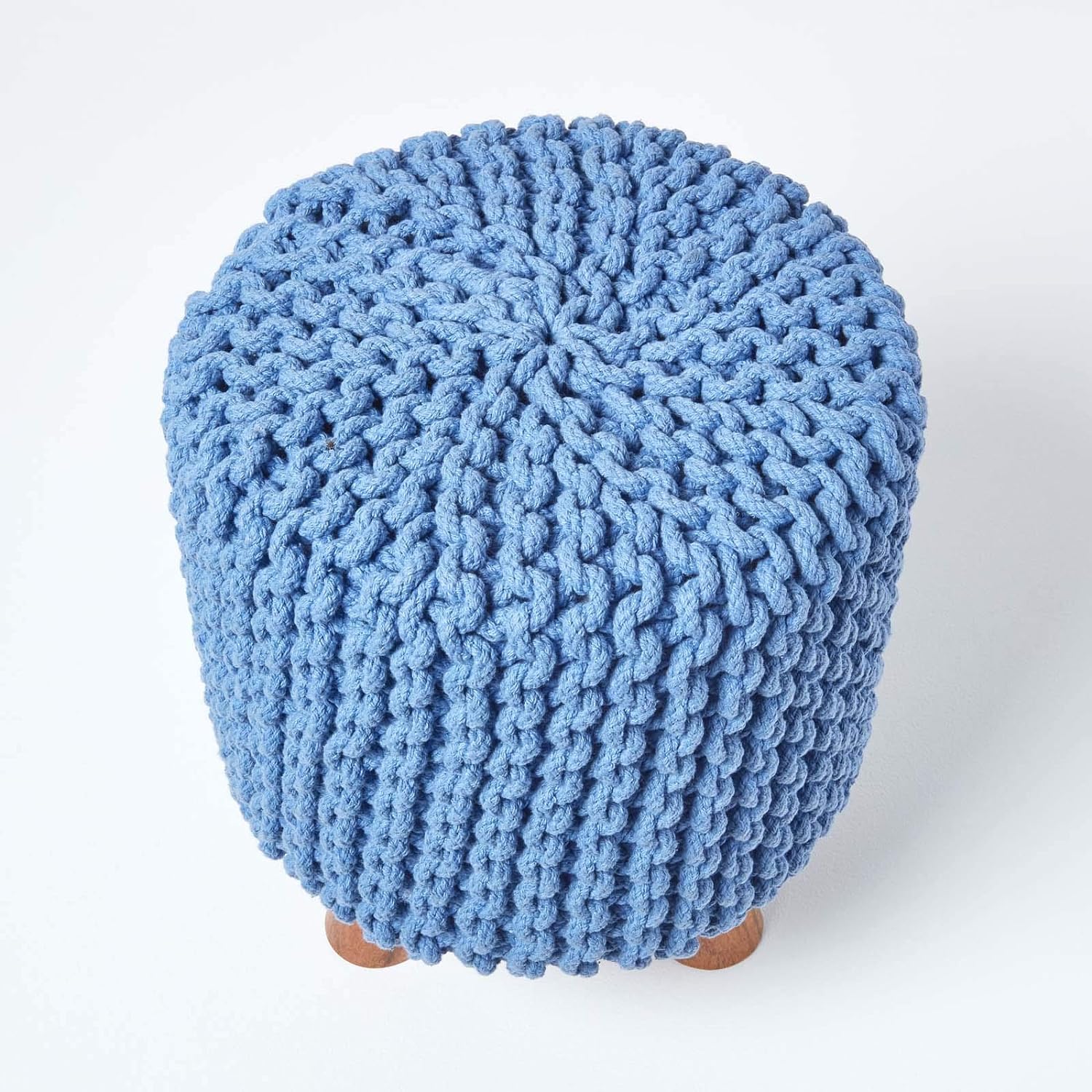 - Der grob gestrickte Bezug ist aus robuste 100% Baumwolle Garn handgefertigt und dadurch strapazierfähig und formbeständig. Der Strickhocker ist mit stabilem Holzrahmen und drei Massivholzbeinen ausgestattet.