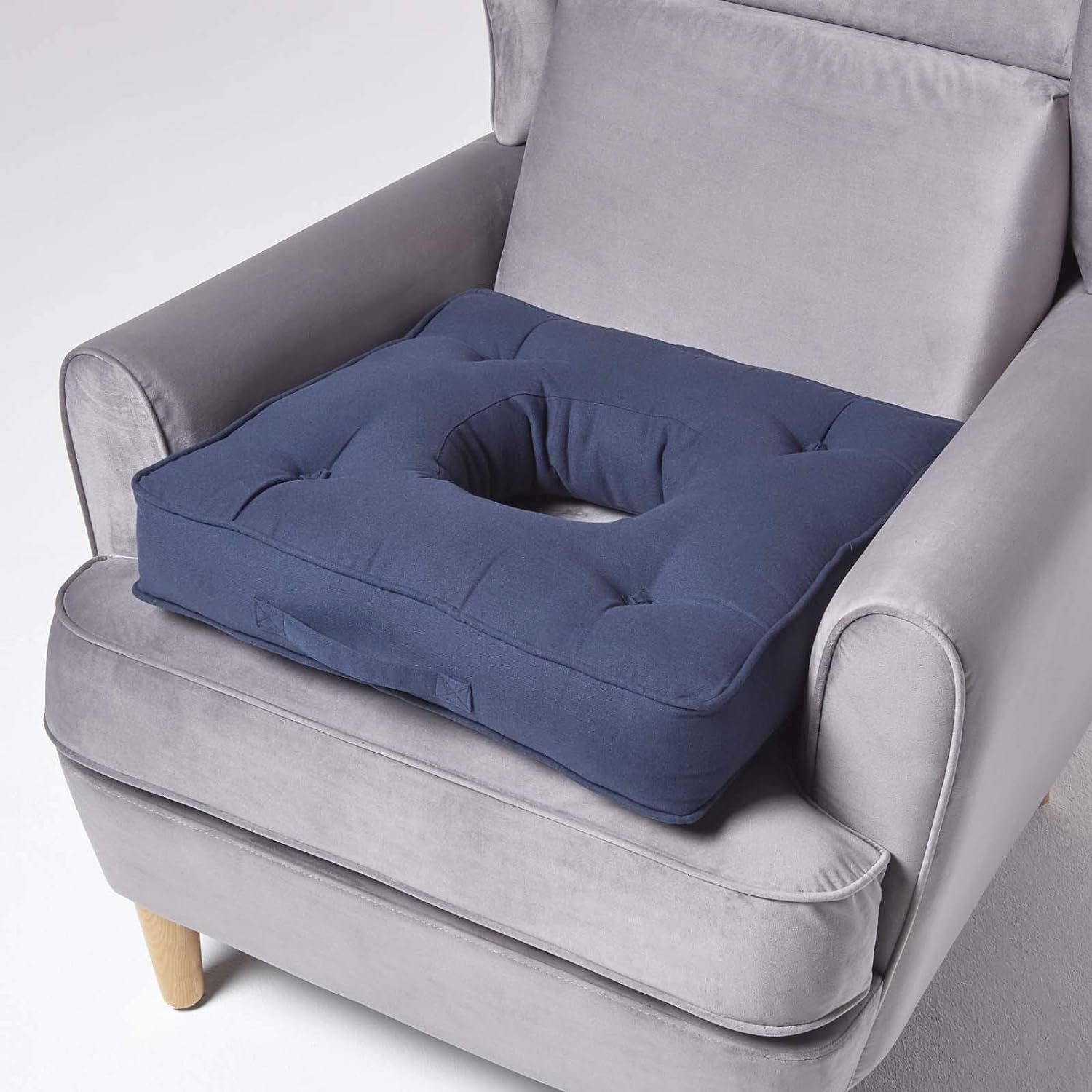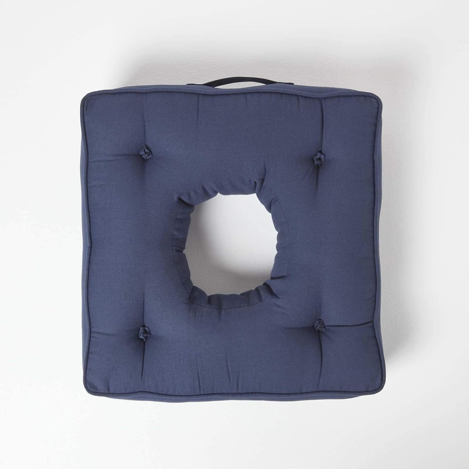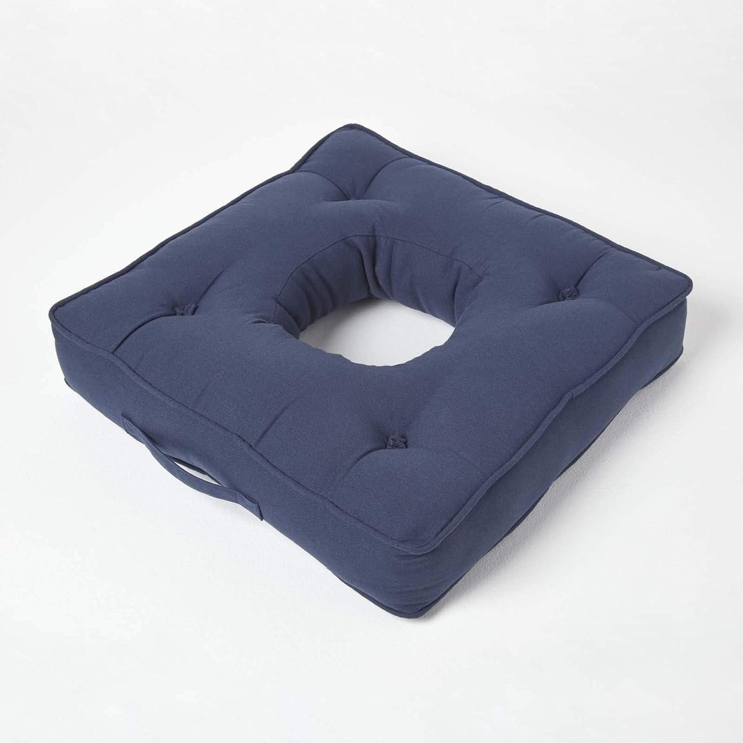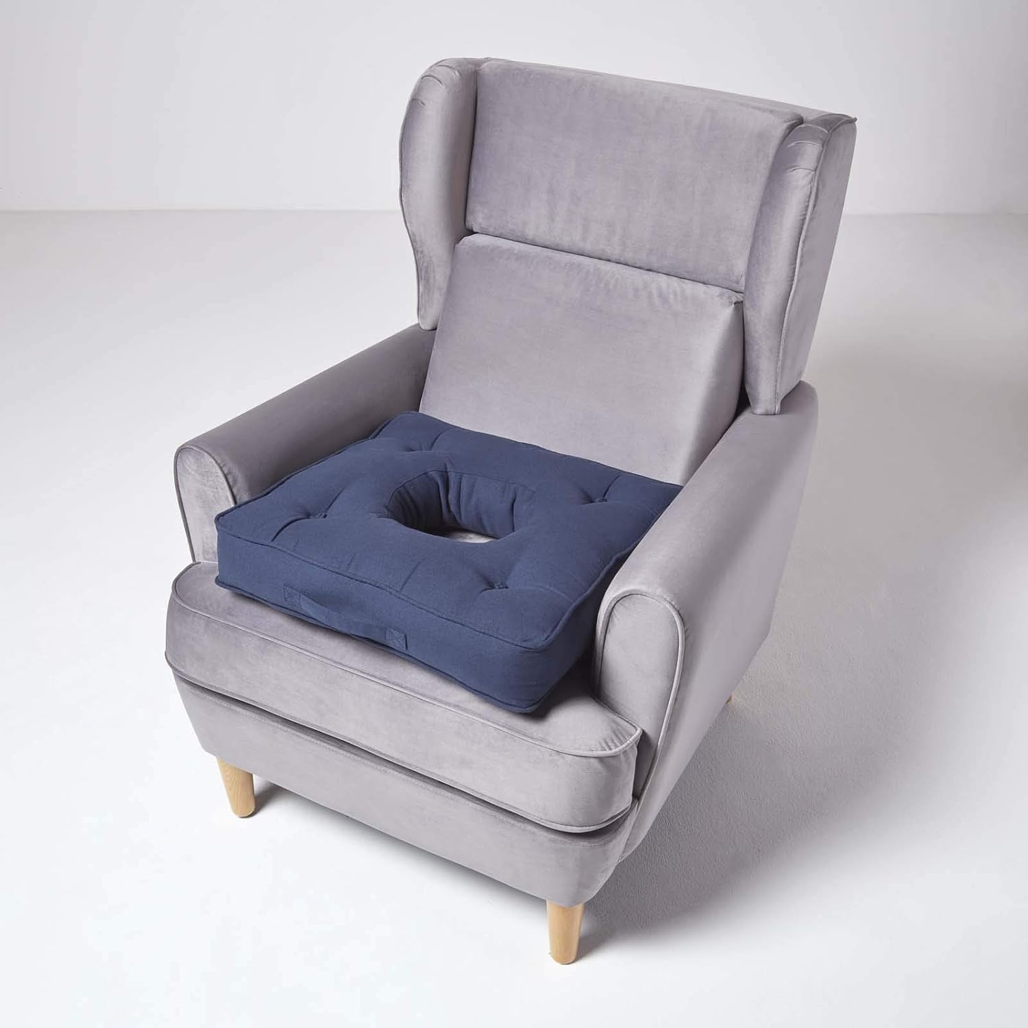 - Dick gepolstertes orthopädisches Sitzkissen mit Aussparung. Masse: ca. 50 x 50 x 10 cm, Farbe: dunkelblau/marineblau.