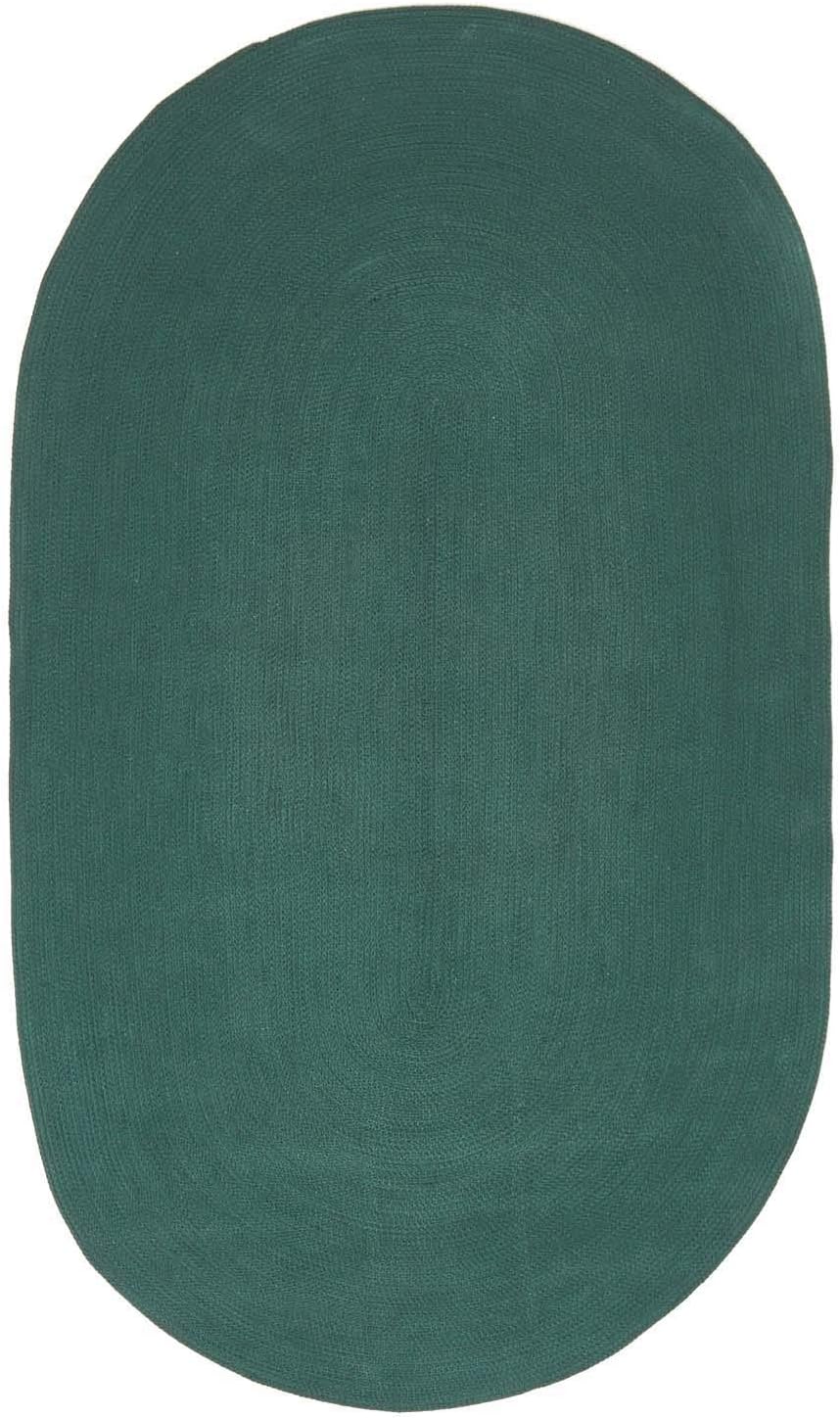 - Unifarbener Flechtteppich. Farbe: dunkelgrün, Grösse: ca. 110 x 170 cm.