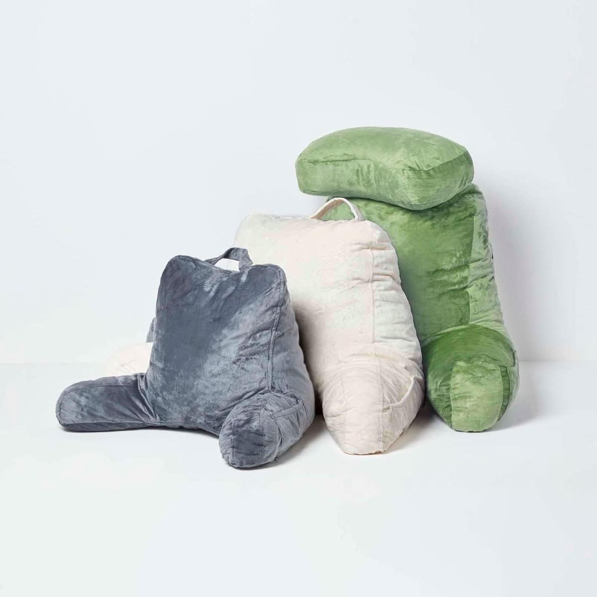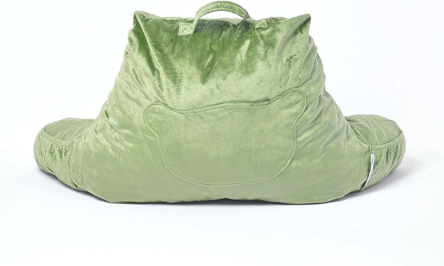 - Kuscheliges Lesekissen mit Armlehnen und Samtbezug, grosszügig gefüllt mit zerkleinertem Memory Foam. Grösse: L. Masse ca.: B 38 cm x H 46 cm. Farbe: Grün.