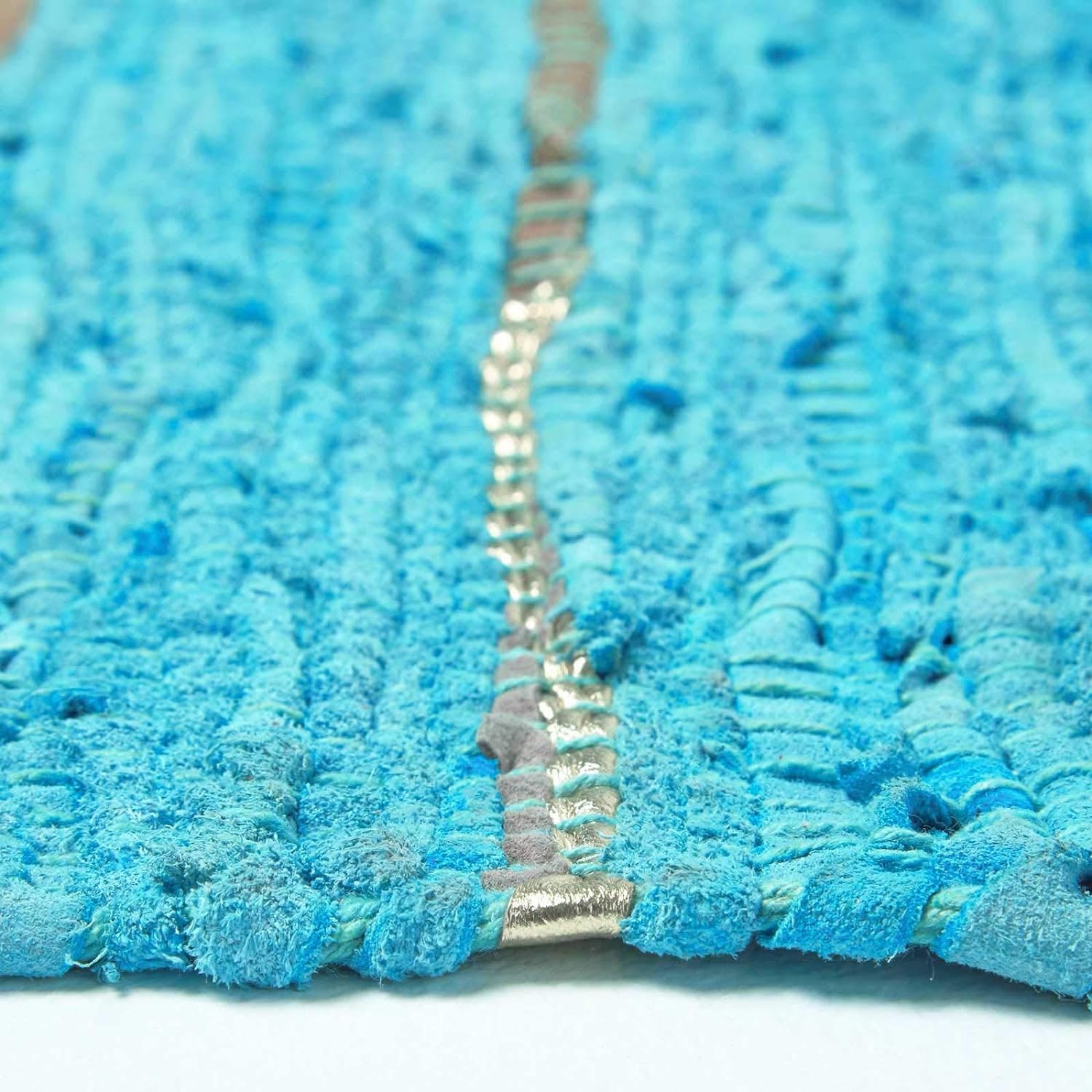 - Moderner Teppichläufer mit Echtleder und Glitzer. Grösse: ca. 66 x 200 cm, Farbverlauf: türkis und gold.