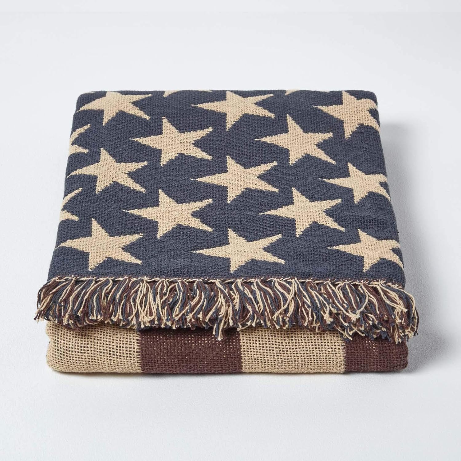 - Tagesdecke mit der amerikanischen Flagge. Grösse: ca. 125 x 150 cm, Farbe: mehrfarbig (dunkelblau, creme, rost-rot).