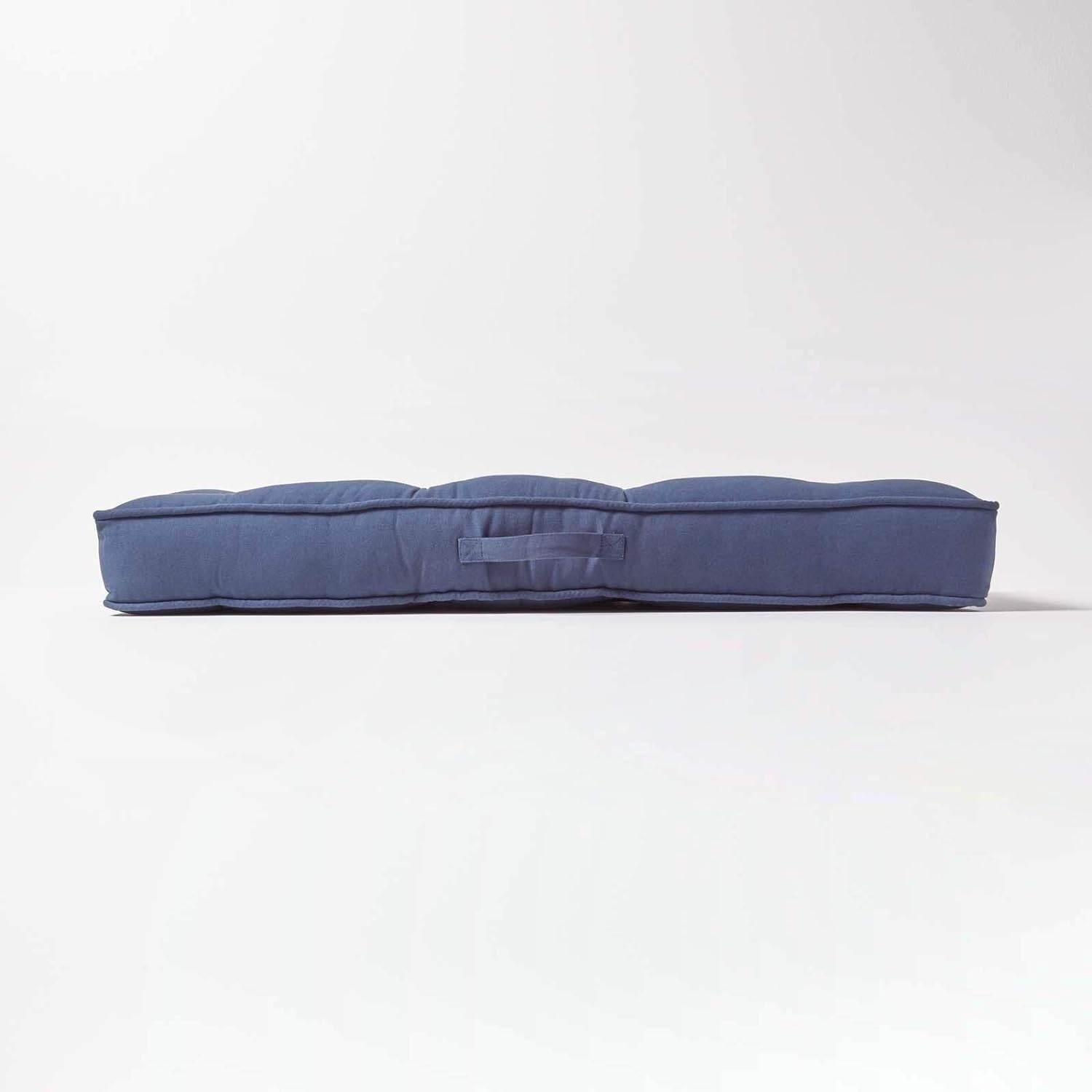 - Dick und fest gepolstertes langes Sitzkissen für 2-Sitzer-Sofas mit Tragegriff und gestepptem Baumwollbezug. Grösse ca.: B 100 x T 48 x H 10 cm. Farbe: Dunkelblau.