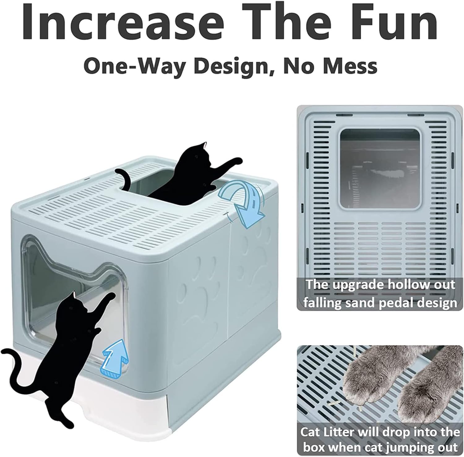 - đ±ăMultifunktionales ZubehörăDas Gitter oben auf der Katzentoilette hilft dabei, die Katzenstreu zu recyceln und den Raum sauber zu halten. An der Seite befindet sich ausserdem eine kleine Schaufel, mit der Sie jederzeit reinigen können.