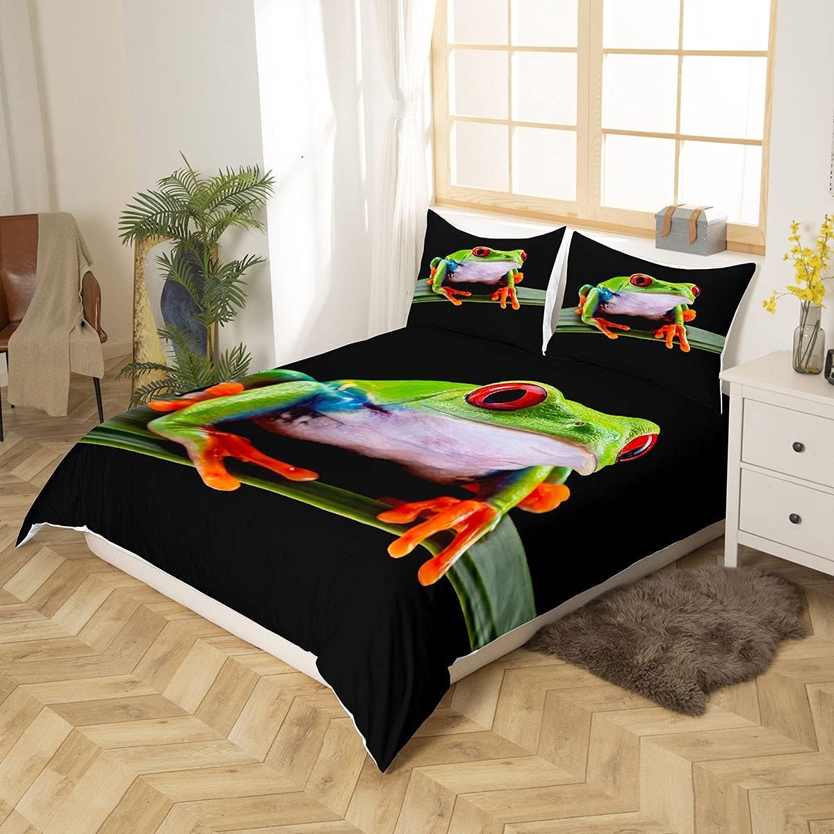 Homewish Frosch Bettwäsche Set Tropical Amphibian Tröster Cover 3D Tier Frosch Print Bettbezug Für T