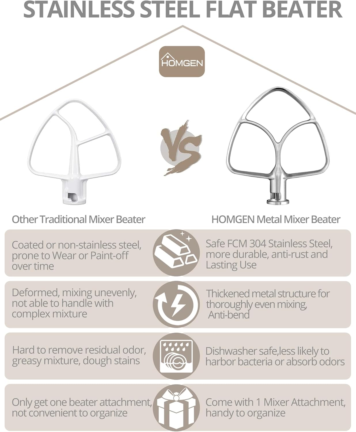 - 【Zeit- und Arbeitsersparnis】HOMGEN Flachrührer 4.5-5QT Aufsatz kann die Mischzeit effektiv reduzieren, so dass Ihre Teigzubereitung schneller und weniger arbeitsintensiv als je zuvor ist.