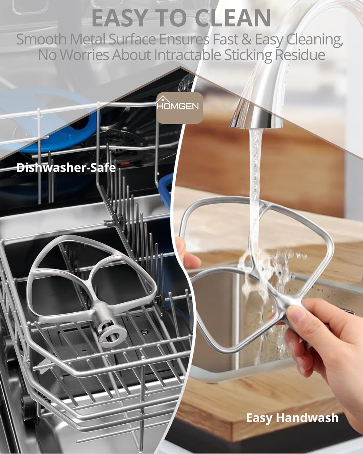 - 【Leicht zu reinigen und zu lagern】Der Flachrührer ist spülmaschinenfest und leicht zu reinigen. Der mitgelieferte Haken kann an den Schrank geklebt werden, um die Organisation des Knethakens zu erleichtern.