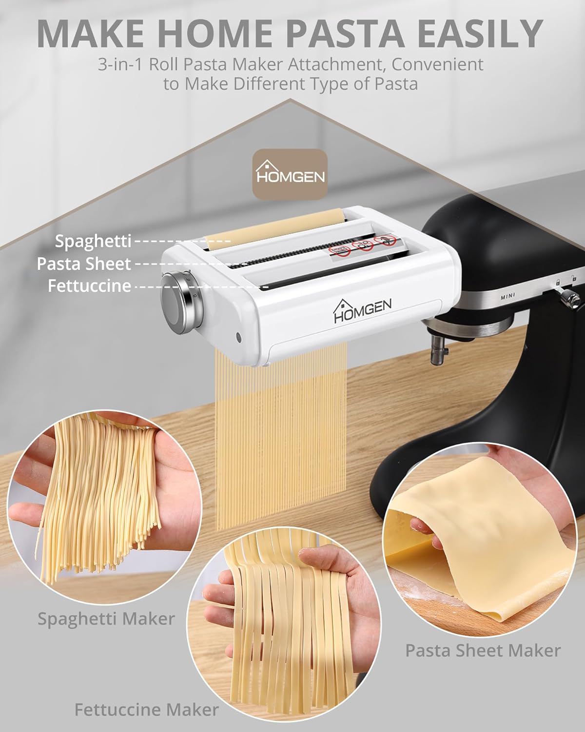 - 【3-IN-1 Nudelmaschine Aufsatz】Dieser Nudelaufsatz ist leicht zu verstauen, nicht leicht zu verlieren und erspart die Mühe, Zubehör während des Gebrauchs auszutauschen.