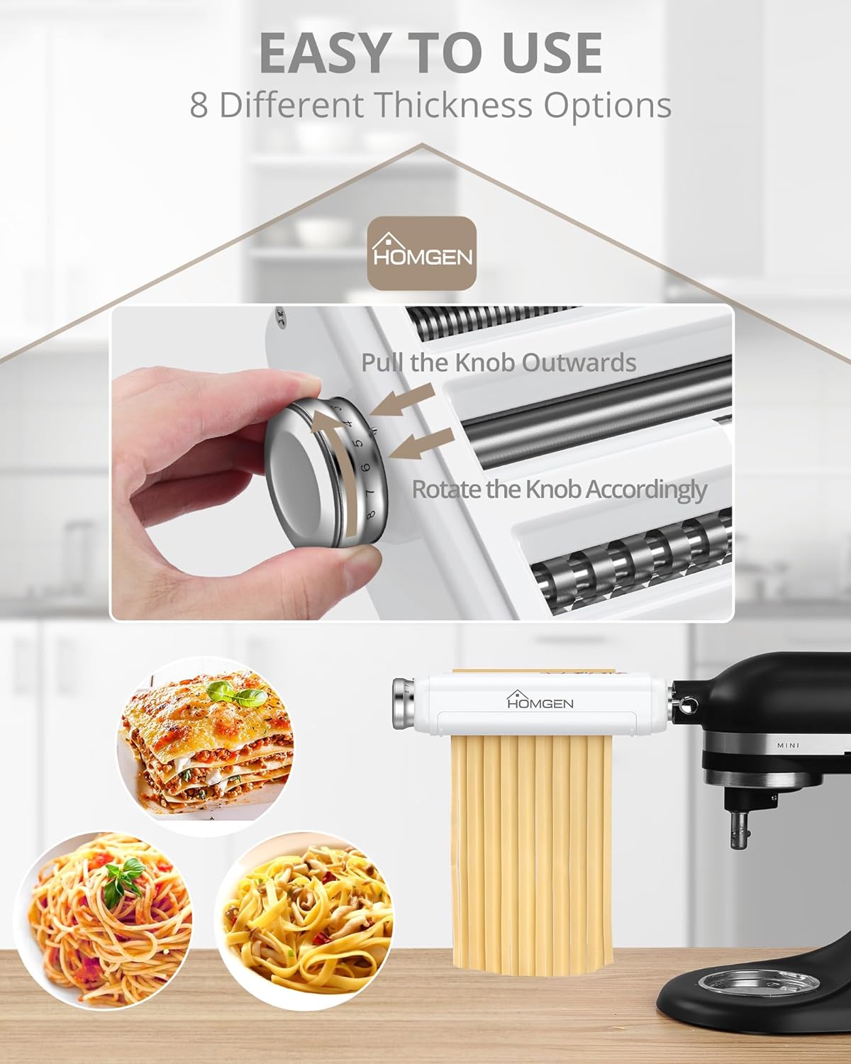 - 【Nudelaufsatz mit 8 Dicken】Dieser Kitchenaid Nudelaufsatz kann Nudeln in 8 Dicken schneiden. Machen Sie 0,5-2 mm Nudeln nach Ihren Vorlieben und Bedürfnissen.