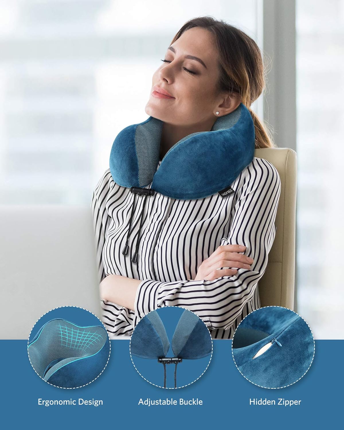 - 【Memory Foam Kissen】HOMIEE Reisekissen besteht aus hochwertigem, weichem Samt und einem bequemen, langsam zurückprallenden Memory Foam Kissenkern. Der Kissenbezug besteht aus weichem Plüsch und ist nicht pillingförmig, kann Ihnen bieten Leichte