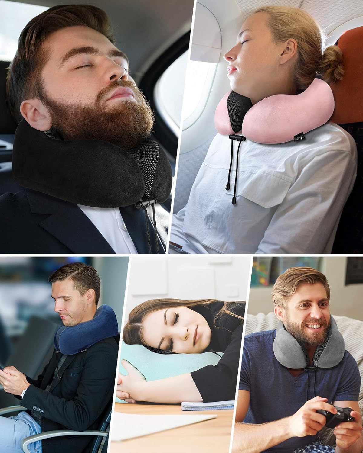 • Einfach zu tragen und breite Anwendung: Kommt mit einer tragbaren Tragetasche, das Nackenkissen aus Memory-Schaum ist leicht zu verstauen, auch um Platz zu sparen. Bequeme Schlafmaske und Ohrstöpsel werden kostenlos angeboten, um Sie von Müdigkeit zu