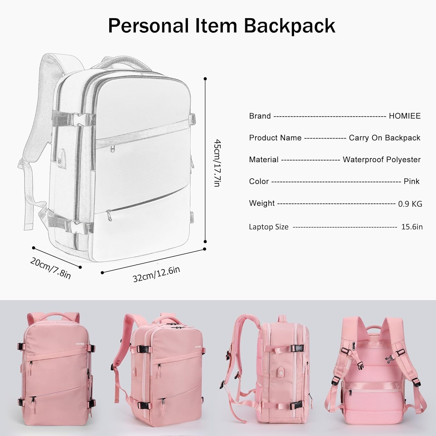 HOMIEE Reiserucksack Damen, Handgepäck Rucksack,15,6 Zoll Laptop Rucksack für Arbeit Schule Wochenen