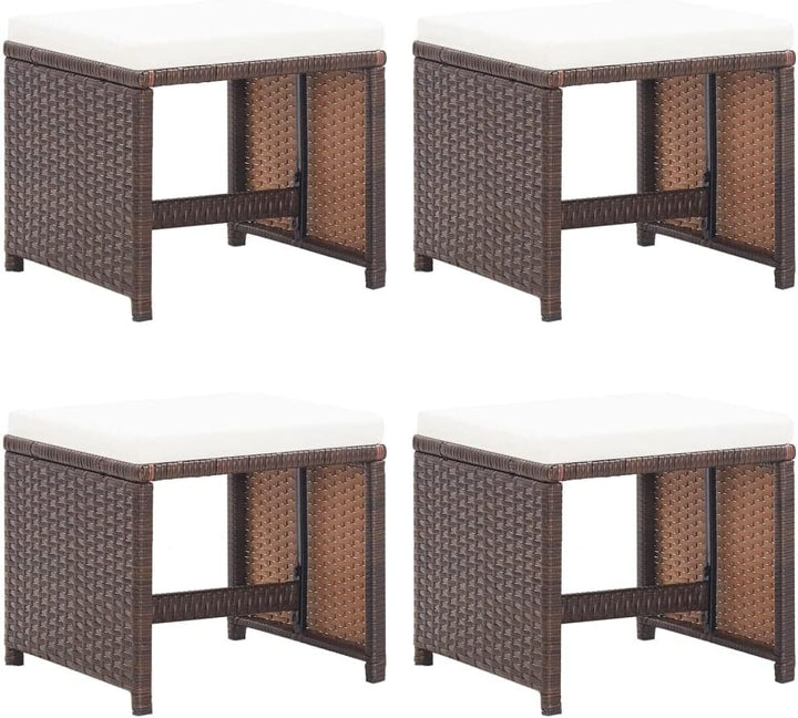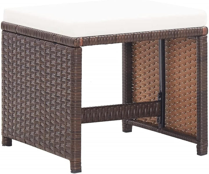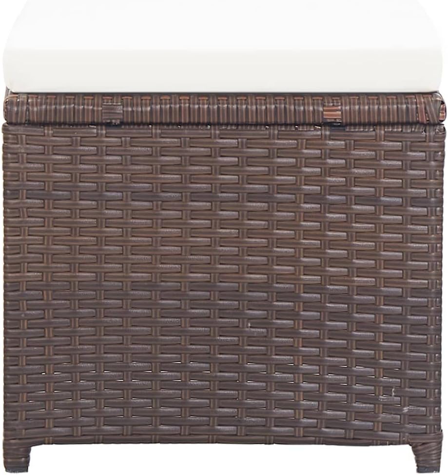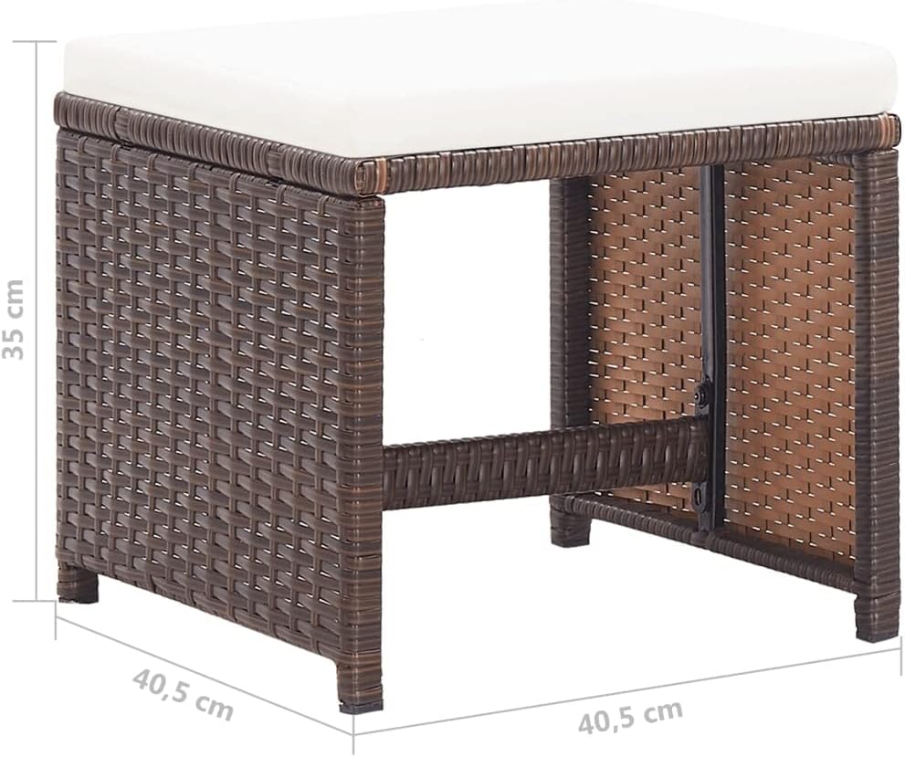 - đăFarbe & AbmessungenăPE-Rattanfarbe: Braun. Kissenfarbe: Cremeweiss. Material: PE-Rattan, pulverbeschichteter Stahl, Stoff (100% Polyester). Abmessungen: 40,5 x 40,5 x 35 cm (B x T x H). Sitzkissen-Dicke: 5 cm. Zusammenbau erforderlich: Ja.