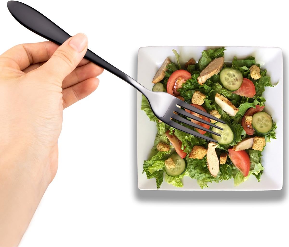 - Schwarzes Set: 6 Stück Dinner Messer, 6 Stück Dinner Löffel, 6 Stück Dinner Gabel, 6 Stück Teelöffel