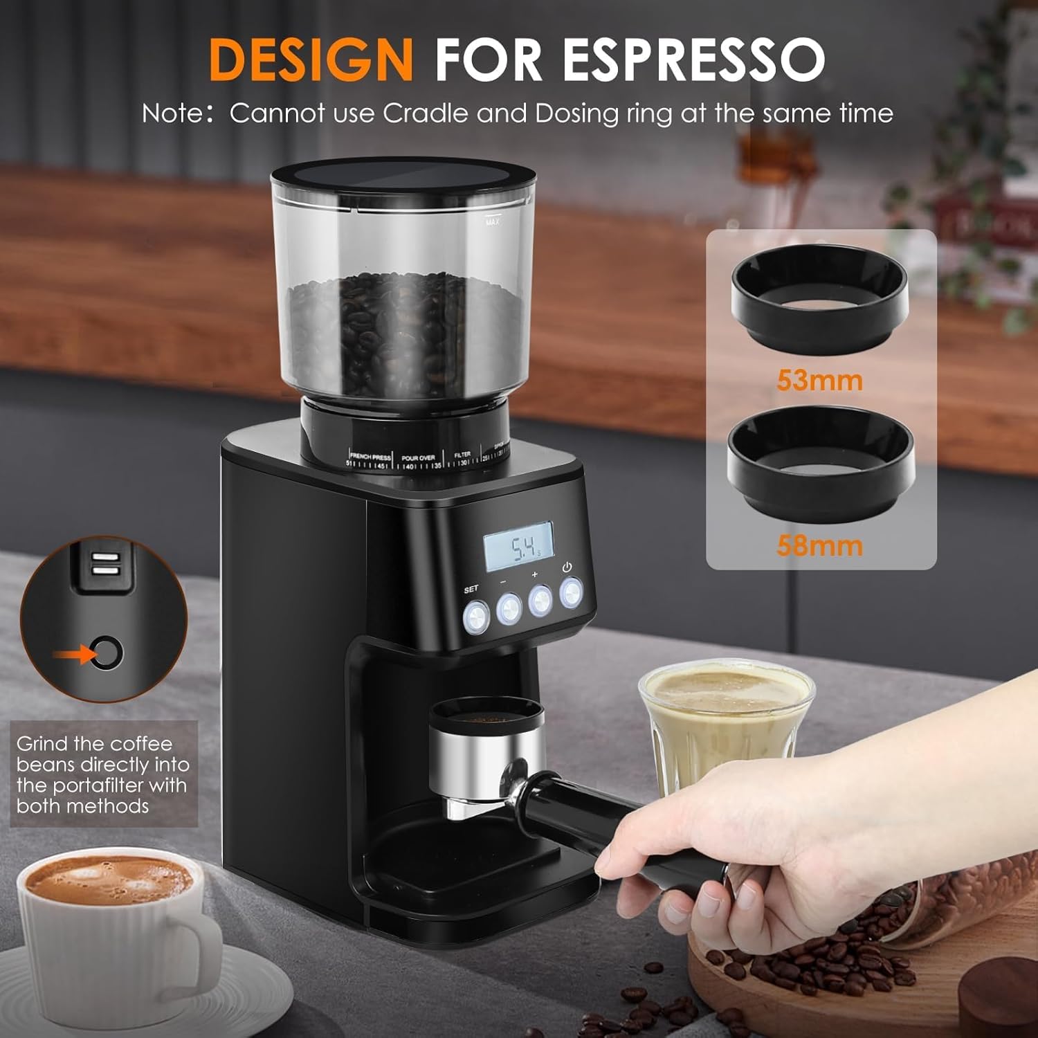 - [𝗦𝗧𝗔𝗧𝗜𝗞𝗙𝗥𝗘𝗜𝗘 𝗞𝗔𝗙𝗙𝗘𝗘𝗠Ü𝗛𝗟𝗘] Diese Kaffeemühle für Siebträger verwendet eine statikfreie Technologie, um statische Aufladung von Kaffeepulver zu minimieren. Der statikfreie Pulverbehälter