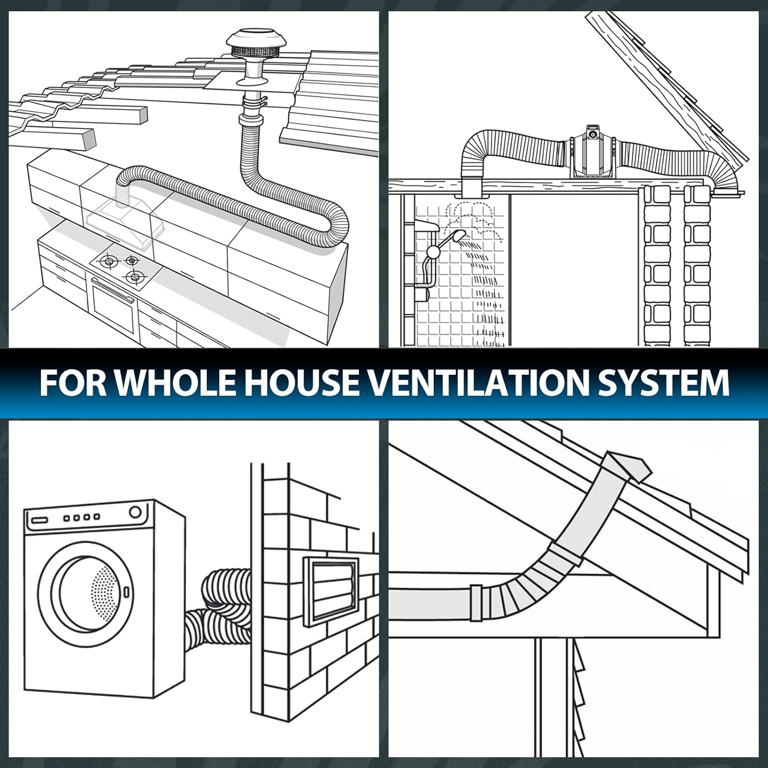 - Anwendung: Der Abluftschlauch ist hauptsächlich für mobile Klimaanlage, Trockner, Abluftventilator, Rohrventilator, Abzugshaube, Hydroponik, Belüftungssystem, usw.