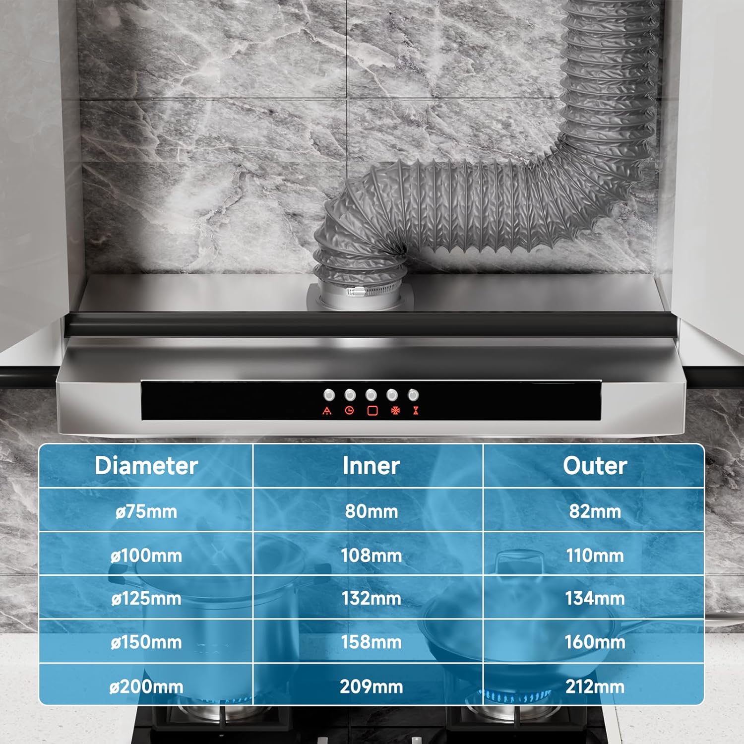 - Installation: Der Luftauslass wird in diesen PVC-Schlauch eingeführt, wenn er verwendet wird. Der tatsächliche Innendurchmesser dieses 100-mm-Rohrs sollte also grösser als 100mm, 105mm sein, damit das Rohr über die Aussenseite des Luftauslasses