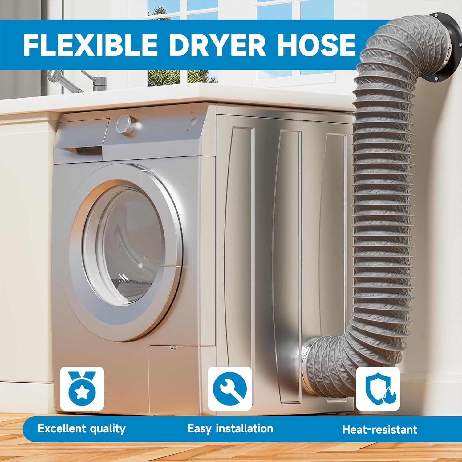 - Rohr-Informationen: Der grauer Abluftschlauch, des Innendurchmesser etawa 105mm und Aussendurchmesser etwa 110mm ist, kann bis zu 5 Meter verlängert werden. In der Verpackung befinden sich auch zwei Schellen zur Befestigung der lüftungsschlauch.