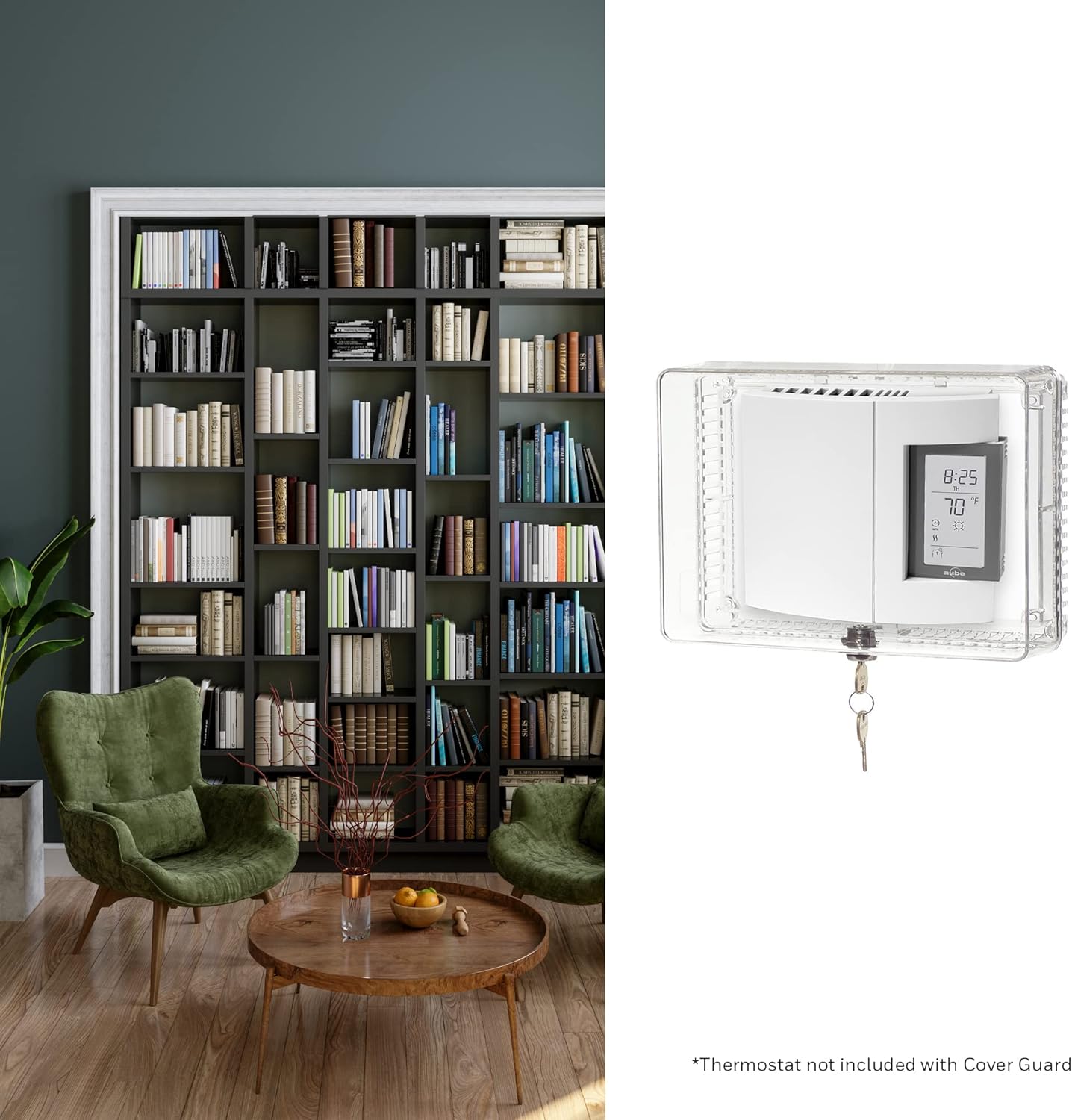 - Tastensperre mit Innenablage zur Vermeidung von Manipulationen Sie können diesen Thermostatschutz horizontal oder vertikal montieren, um Ihren Thermostat anzupassen.